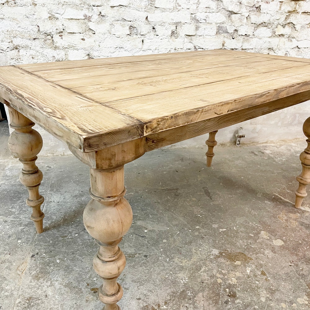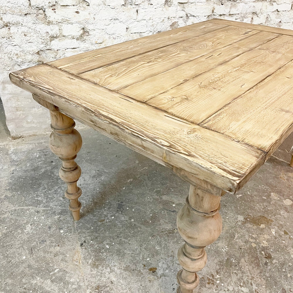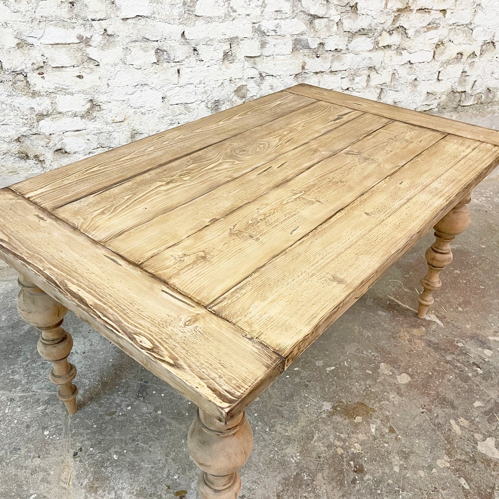 This means that the tabletop may be more rustic or more even than the example table in the picture. The boards also vary in width and are never the same width. If you have any specific ideas or requests, or if it’s important to you that your piece has a particularly rustic look, please let us know when placing your order.