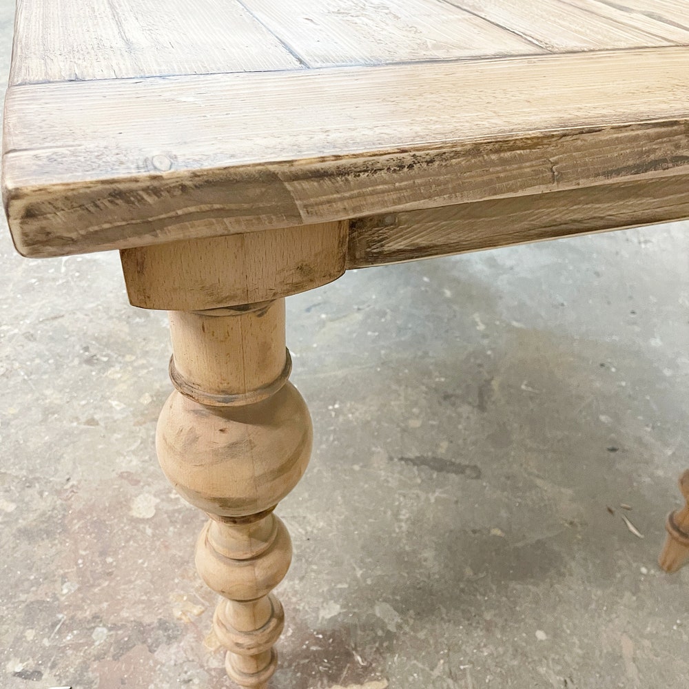 Our tables are 80 cm wide and have a substructure with solid, turned legs.