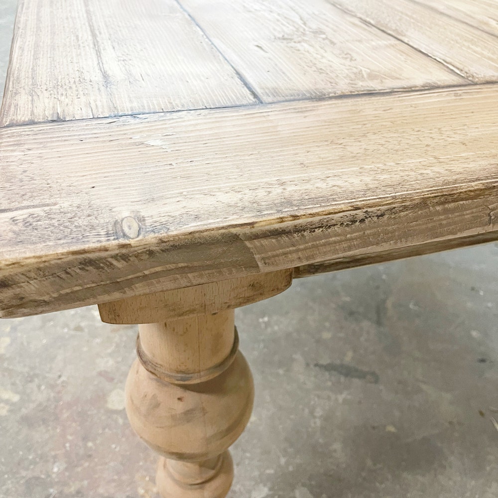 A charming eye-catcher in the dining room or as a desk: our reclaimed wood table is perfect for any space where a cozy gathering is desired. Crafted from chopped reclaimed wood posts, each tabletop is unique.