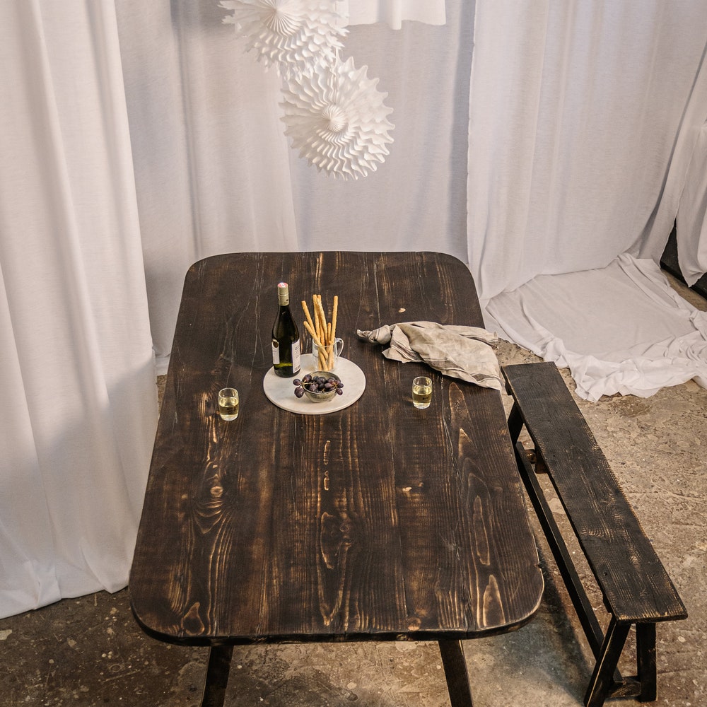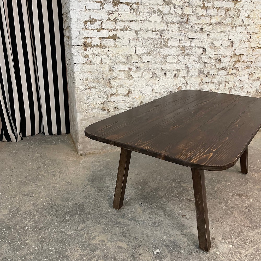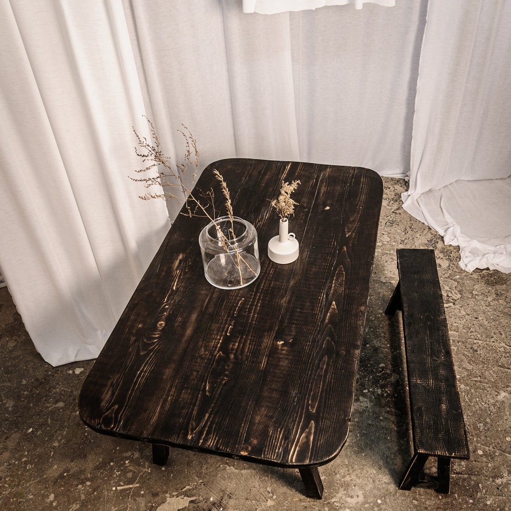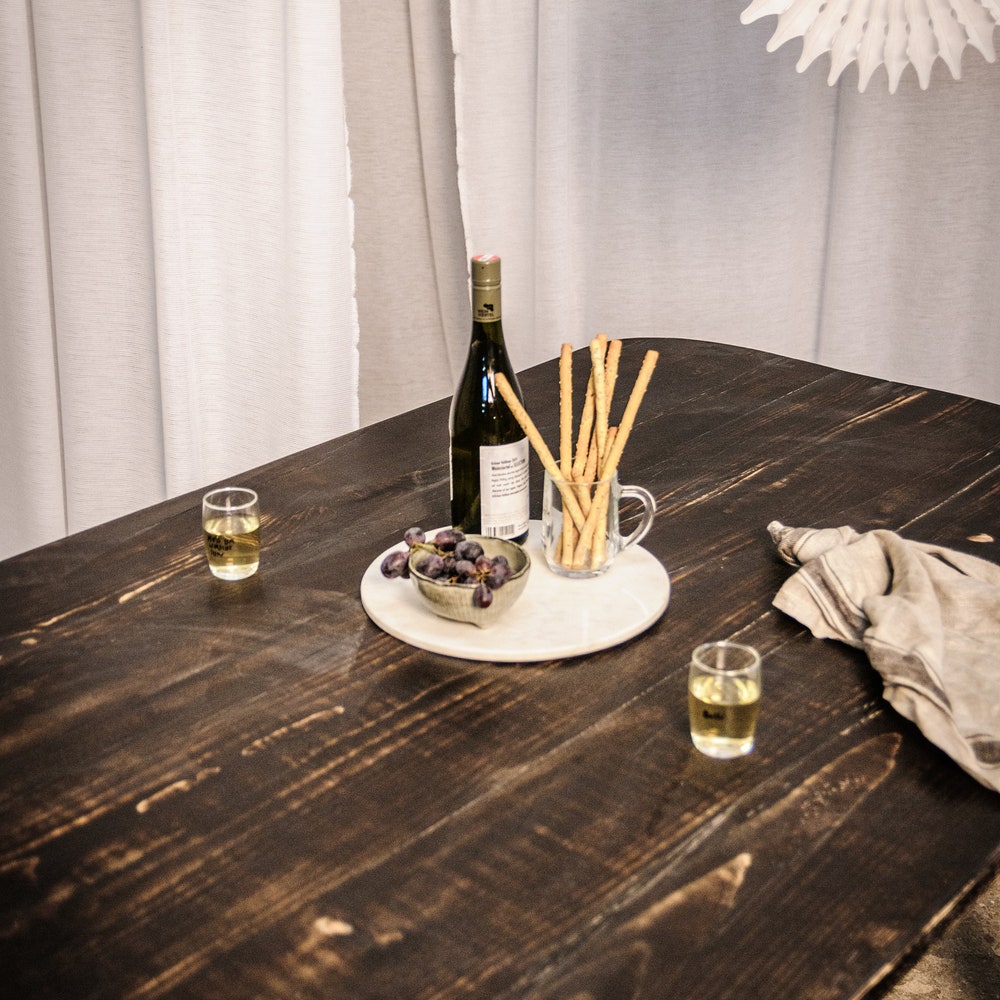 Our standard table measures 140 x 80 cm and features a reclaimed wood substructure. We are happy to manufacture custom sizes and substructures—just ask!
