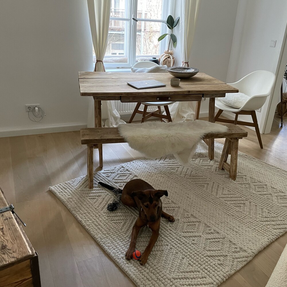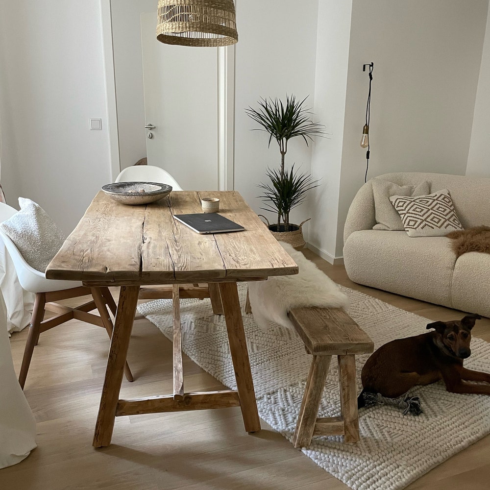 A charming eye-catcher in the dining room or as a desk: our rustic table is suitable for anywhere where people sit comfortably together. Made from old spruce posts, each table top is unique. This means that the top can be more rustic, uneven or even more even than the example table in the picture. The boards also vary in width and are never the same width. If you have special ideas or wishes, or if it is important to you that your piece looks particularly rustic, for example, then please let us know when you place your order.