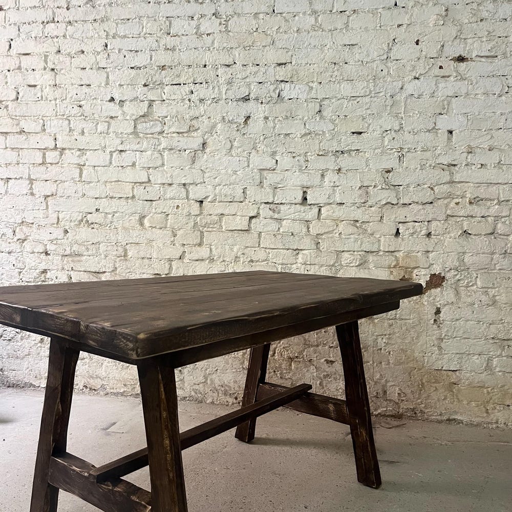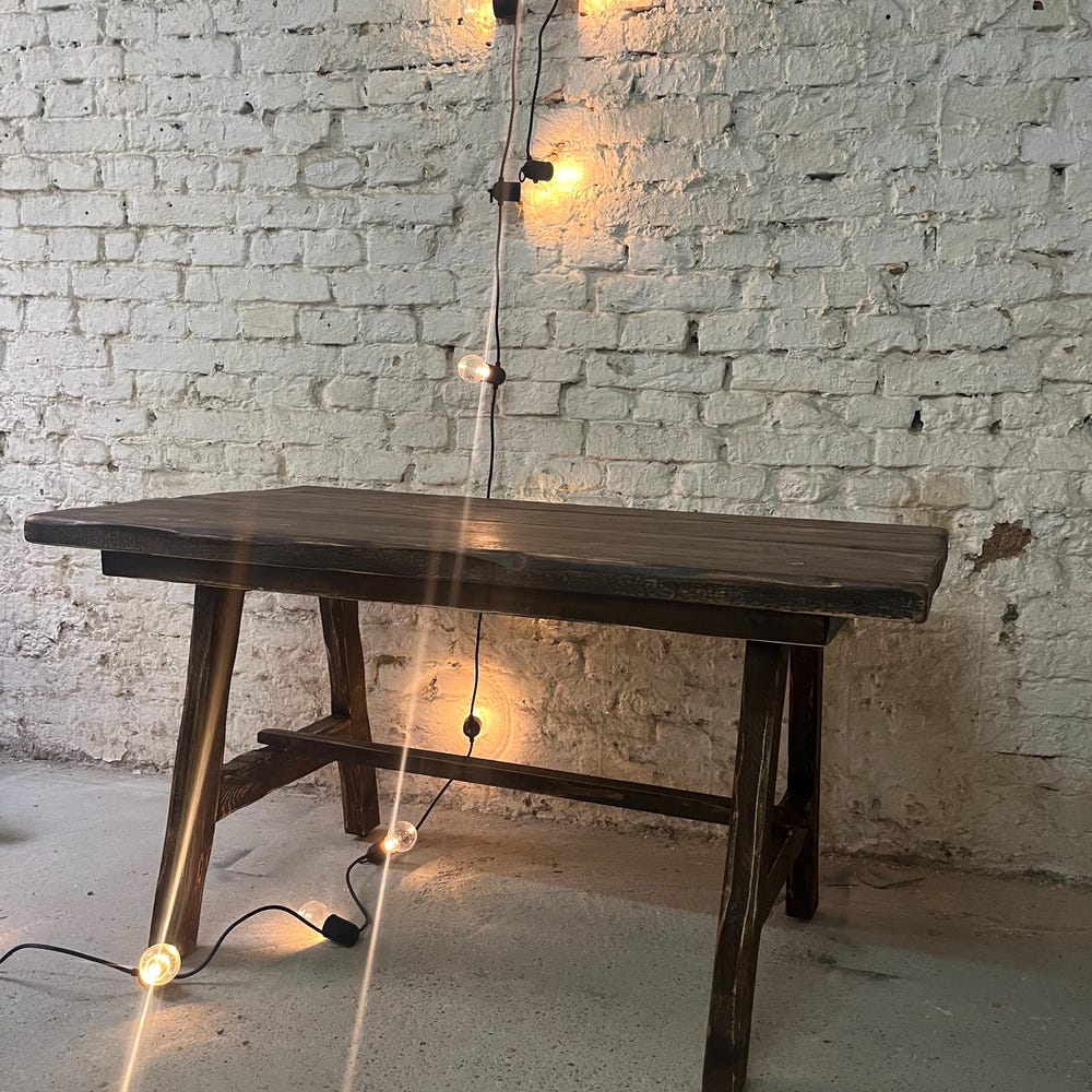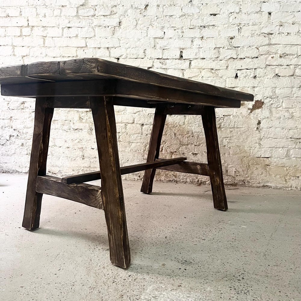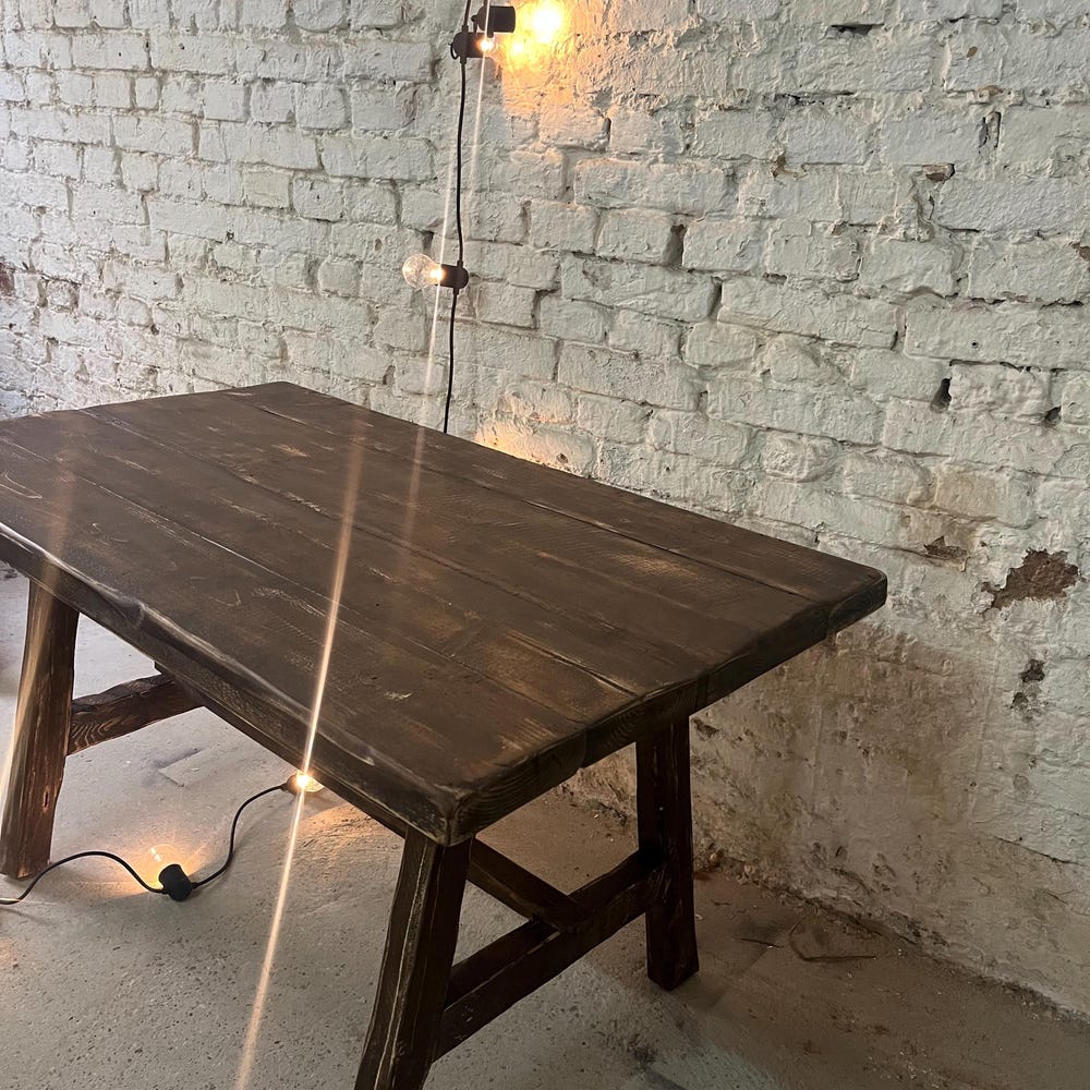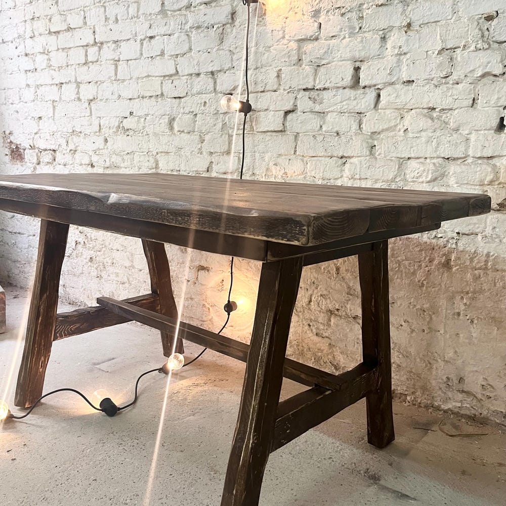 A charming eye-catcher in the dining room or as a desk: our rustic table with a dark finish is suitable for anywhere where people sit comfortably together. Made from old spruce posts, each table top is unique. This means that the top can be more rustic, uneven or even more even than the example table in the picture. The boards also vary in width and are never the same width. If you have special ideas or wishes here, or if it is important to you that your piece looks particularly rustic, for example, then please let us know when you place your order.