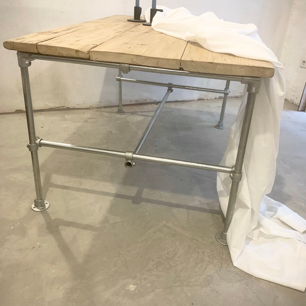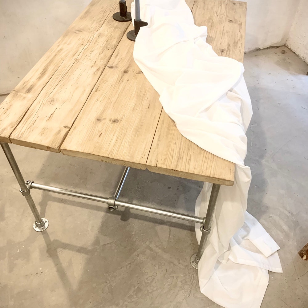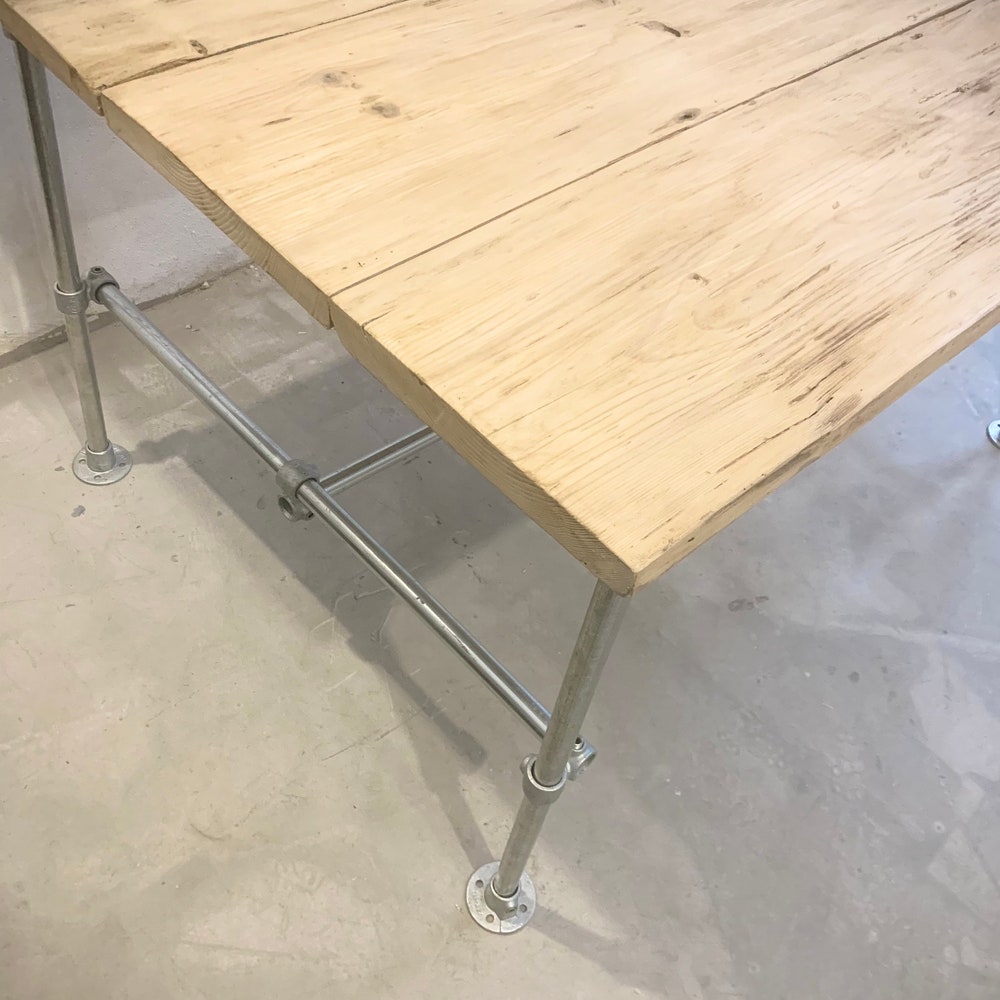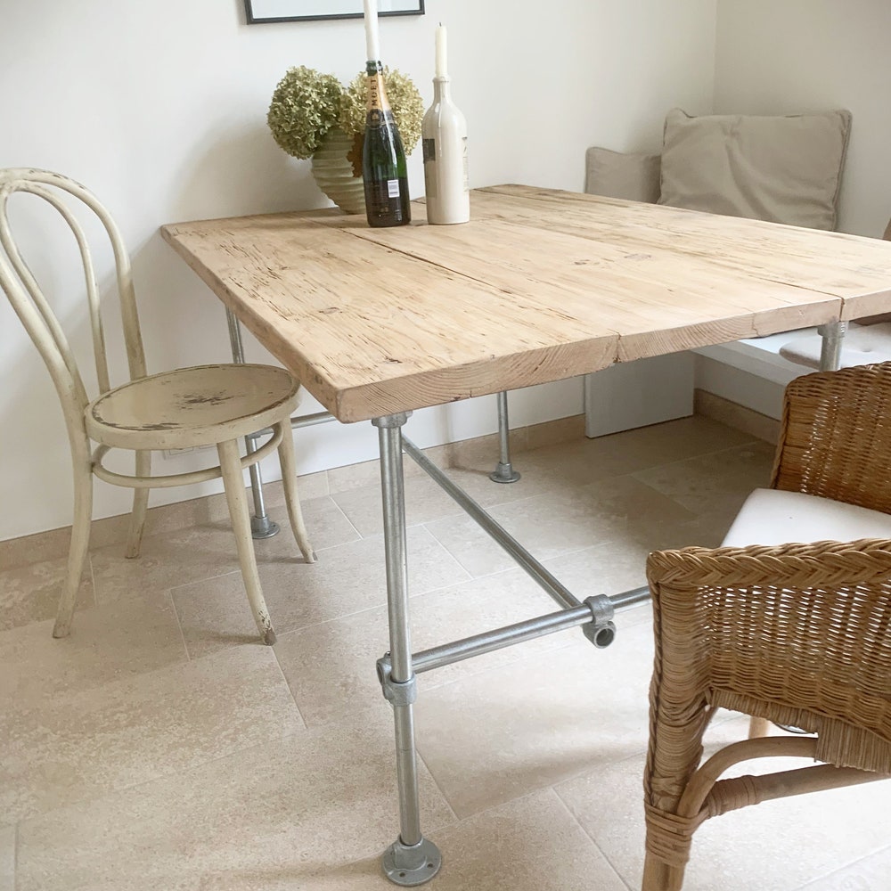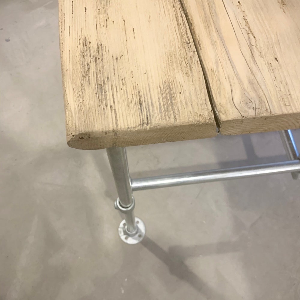 Beautiful combination of reclaimed wood table top and steel tube base.Each piece is unique and the appearance of the table top may vary.