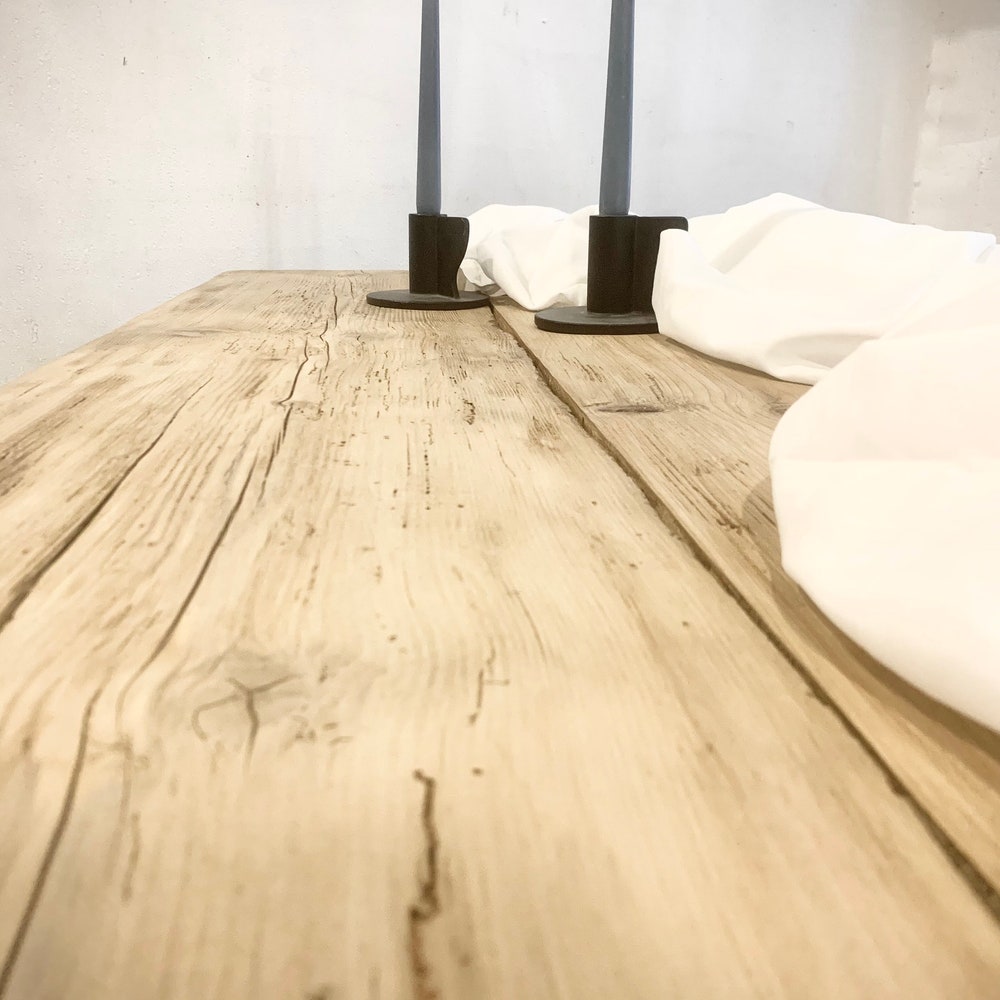 Reclaimed wood table RESI with metal frame