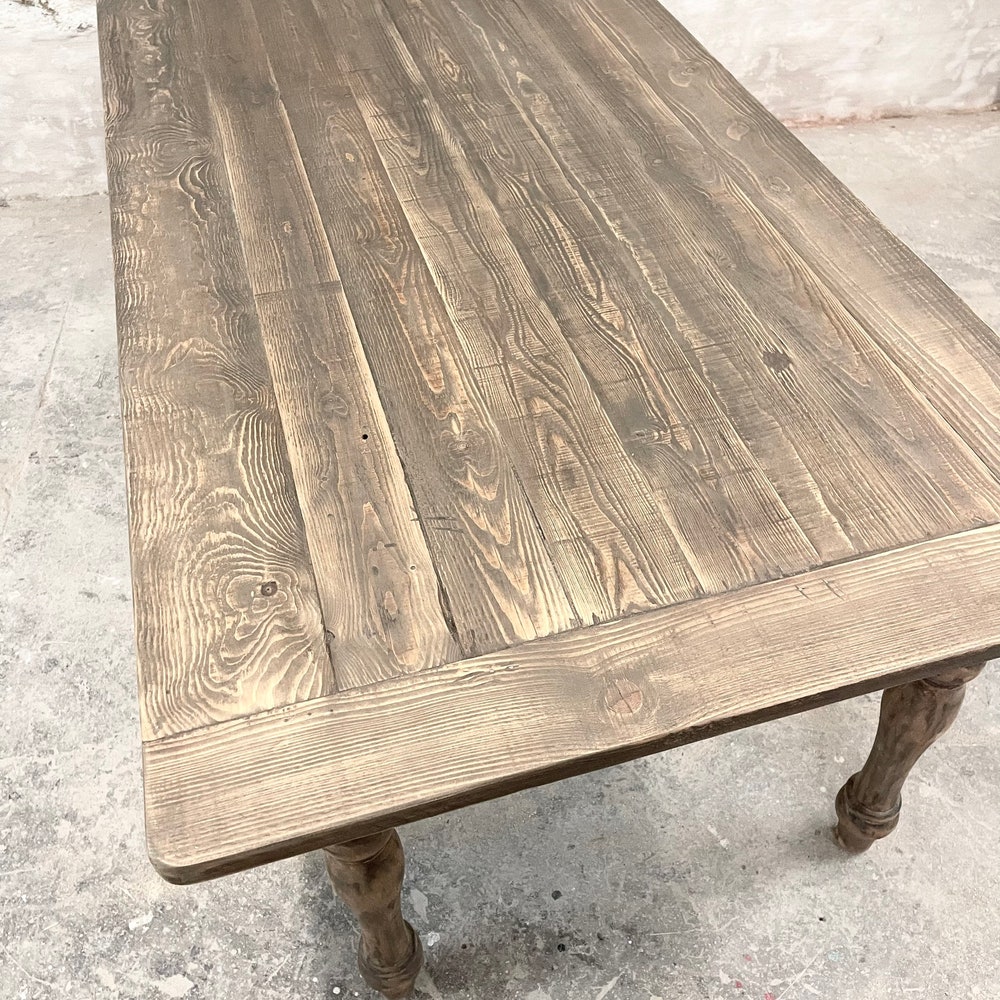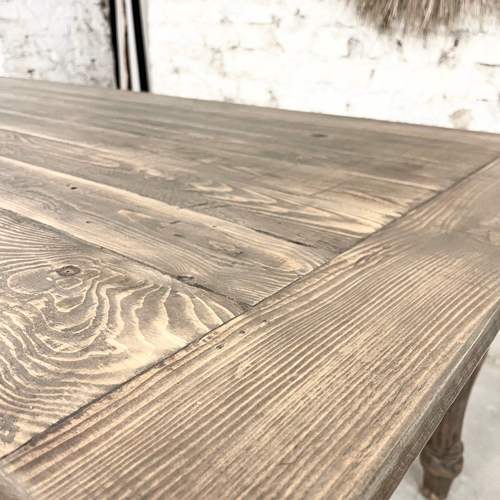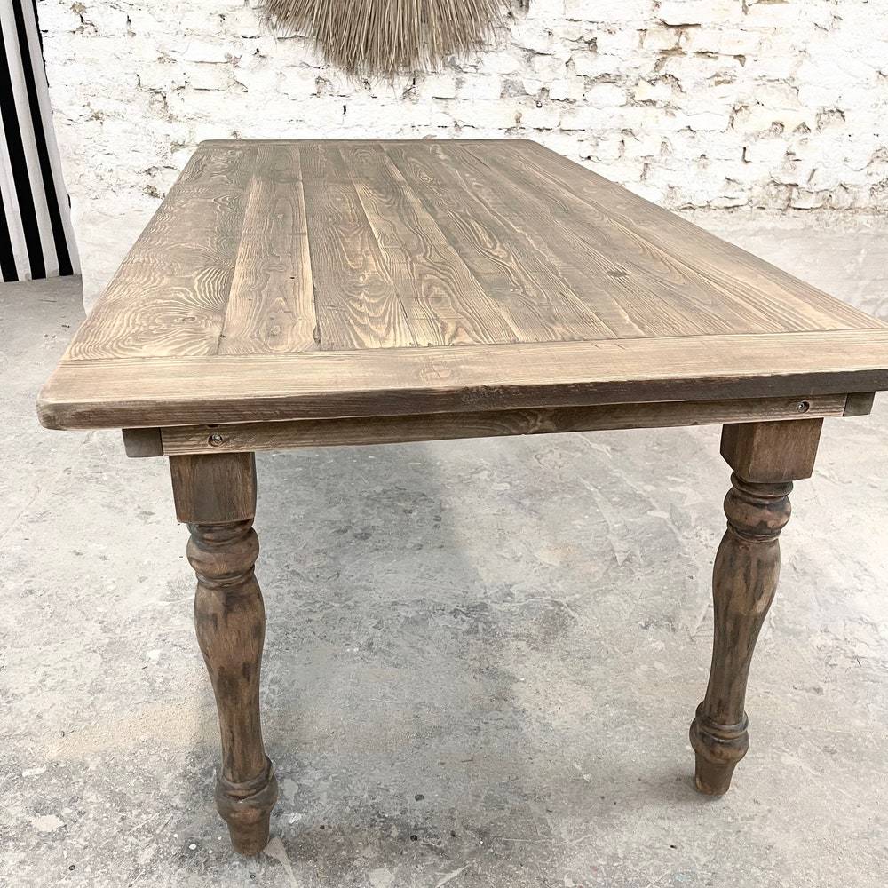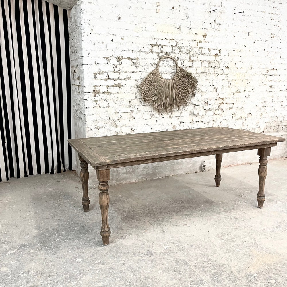 A charming eye-catcher in the dining room or as a desk: our reclaimed wood table is suitable for anywhere where people sit comfortably together. Made from chopped reclaimed wood posts, each table top is unique.