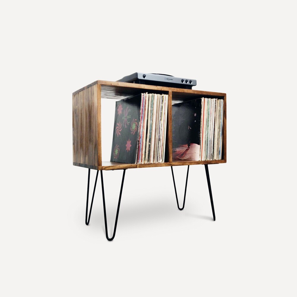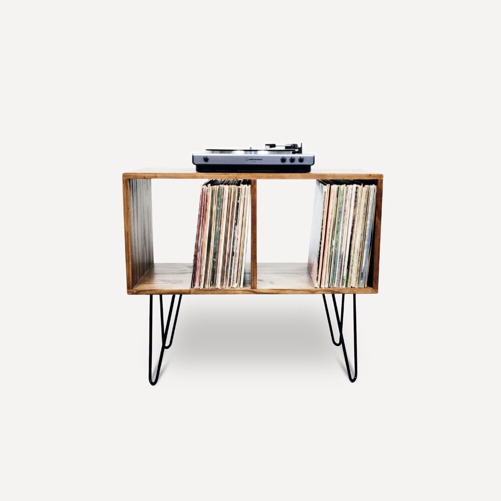 Record Console, Mid Century Modern Stand, Scandinavian Record Vinyl Storage, Hairpin Legs