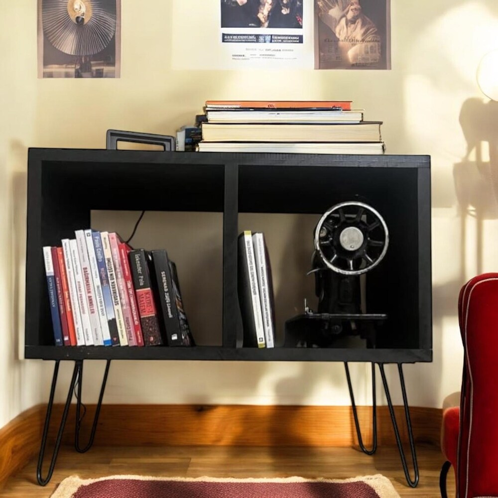 Record Player Stand: This elegant record player stand offers a stable and stylish home for your turntable, providing a sturdy surface to play your vinyl records. The solid wood construction ensures the stability of your turntable while enhancing the overall aesthetic of your living room or music area. Perfect for audiophiles and vinyl enthusiasts alike, this stand is built to last and designed for everyday use.