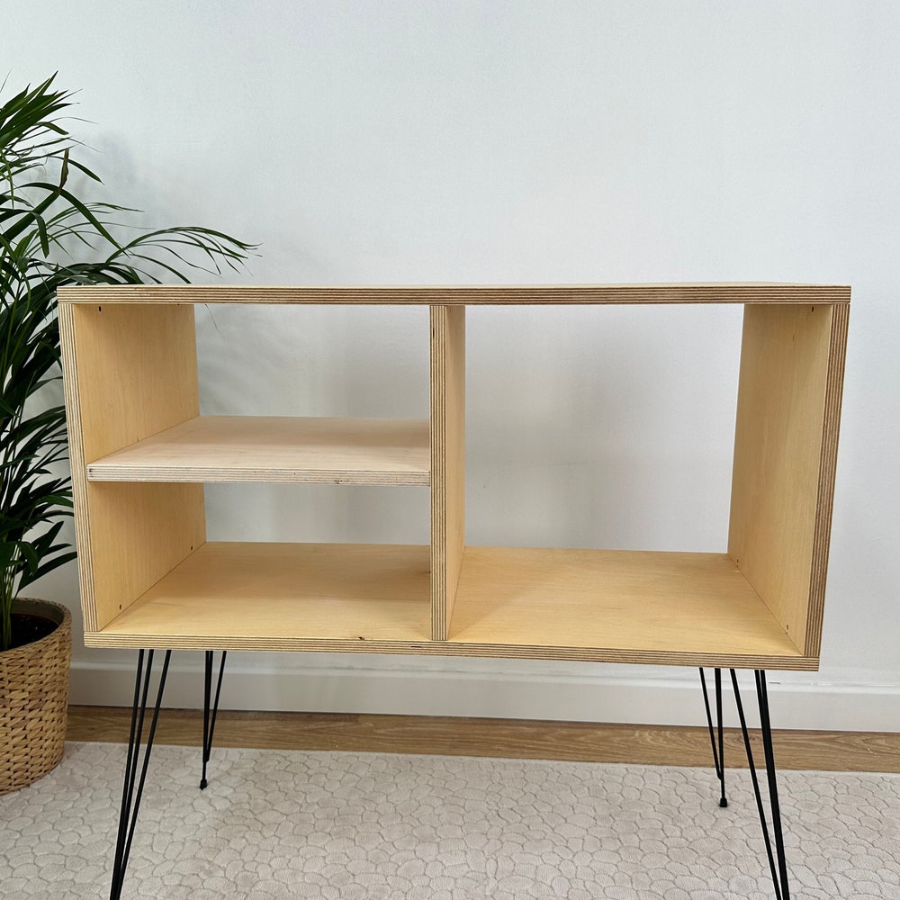 This turntable stand is meticulously crafted from 100% plywood, showcasing our dedication to craftsmanship. We offer four wood options: pine, oak, walnut, and birch plywood. You can see the wood options and color choices in the photos. We aim to bring quality and elegance to your home by translating our impeccable craftsmanship into furniture.