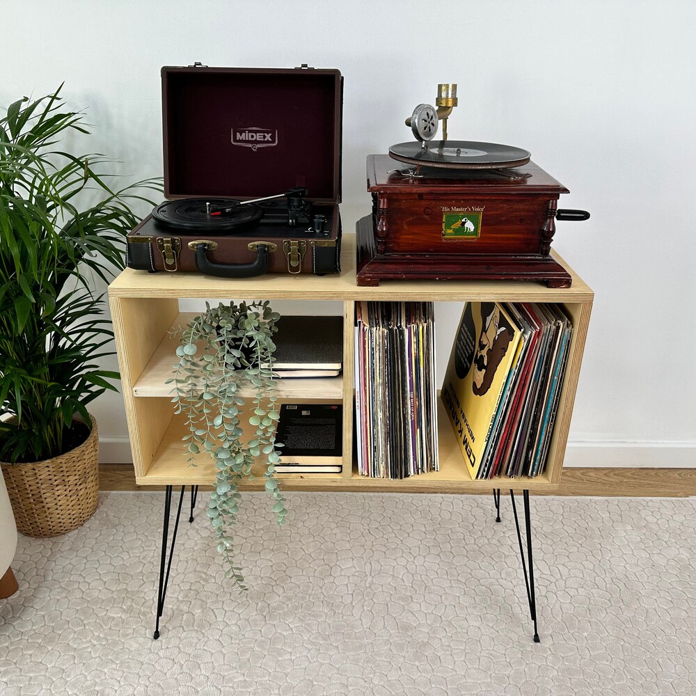 2 in 1 Rack variation, Turntable Stand, Wood Furniture, Handmade Record Player Stand, Industrial Vinyl Table, Media Hifi TV Unit