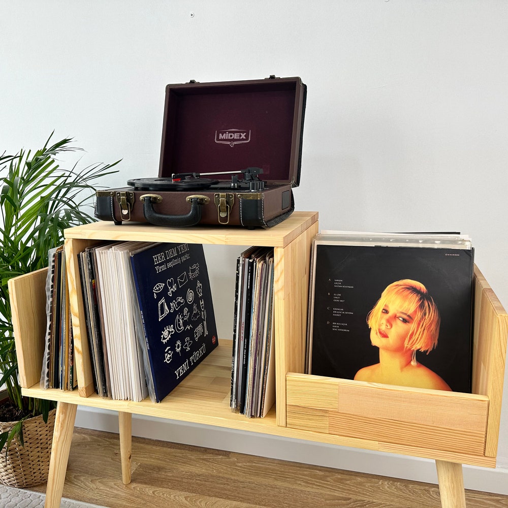 2 in 1 Rack variation, Turntable Stand, Wood Furniture, Handmade Record Player Stand, Industrial Vinyl Table, Media Hifi TV Unit