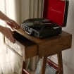 Record player stand with tiled drawer and with a leather storage is a characterictic decoration item for your home or office. Made of top quality pine wood and Genuine Leather with very meticulous workmanship.