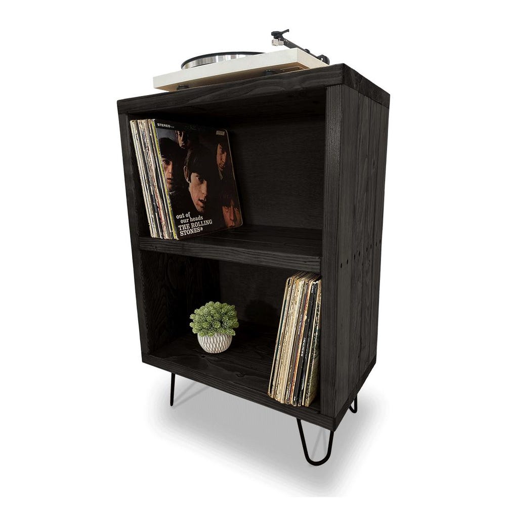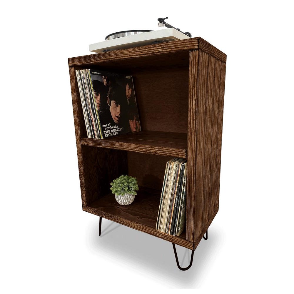 Record Stand Record Player Console Vinyl Record Holder Vinyl Record Bookshelf Shelf for Turntable and Records Made in USA Dbl-Stack