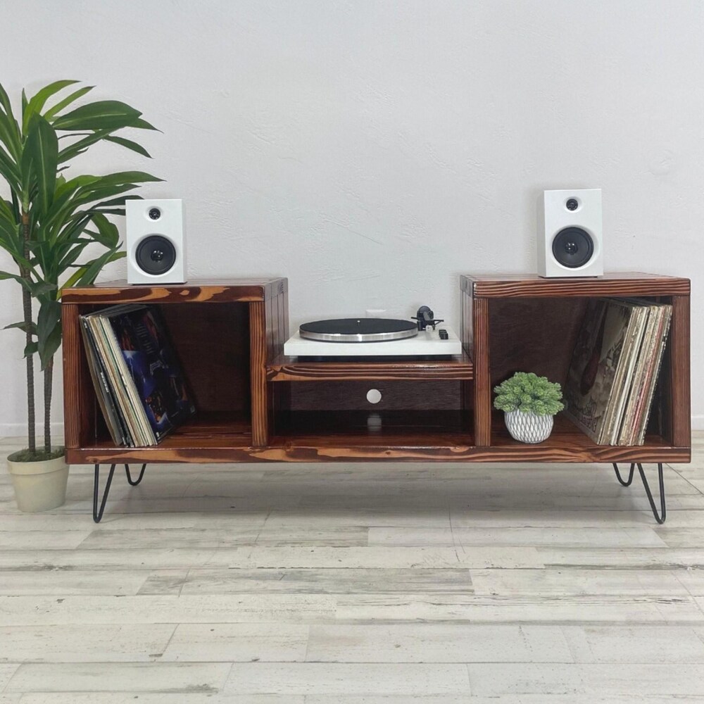 * Rustic and mid-century modern design complements any home decor style, perfect for music enthusiasts and collectors