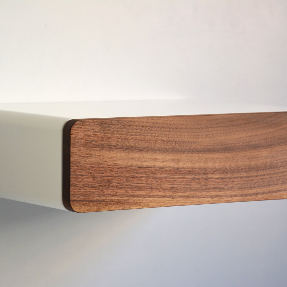 The shelves have a unique, invisible mounting system called french cleat, without any mounting brackets, which make the shelves “floating”.