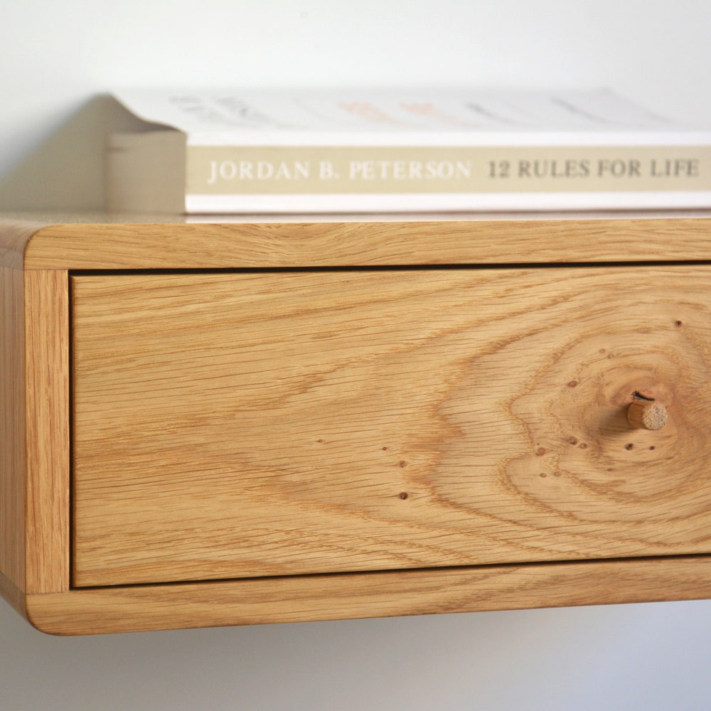Retro oak floating nightstand with drawer | select size | single or double