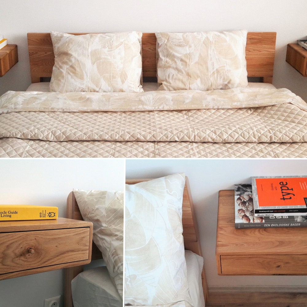This is a made-to-order offer for floating nightstands made of solid oak. Inspired by mid-century modern nightstands.