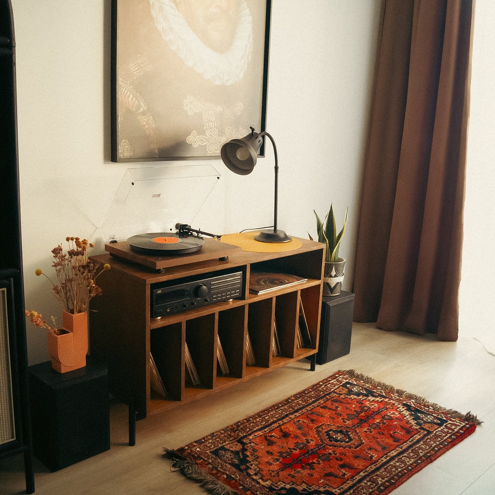 Retro record player stand ‘York’. Handmade Vinyl LP Storage Cabinet.