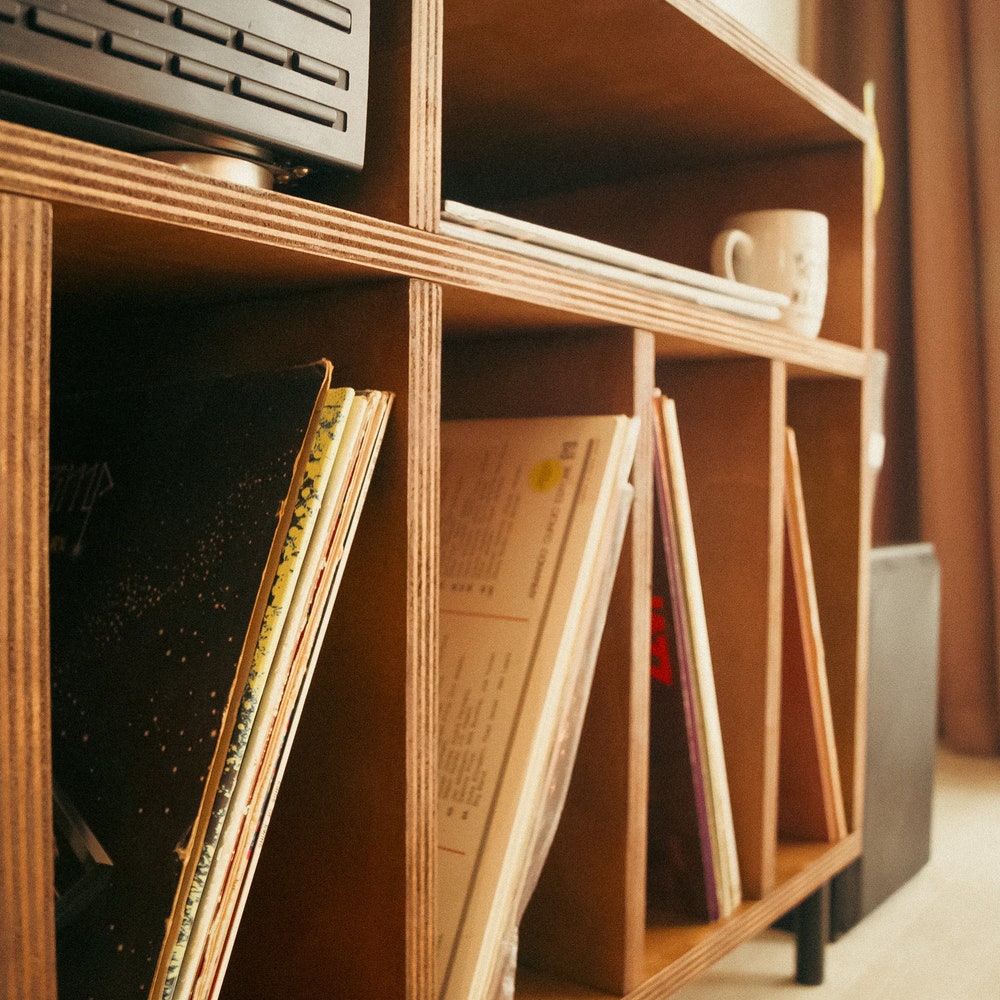 Record player stand ‘York’. An all you need sideboard for any Hi-Fi Audio setup. handmade from a quality plywood with a real wooden veneer, giving it this rich Warm wooden feel that can really brighten up your space. Room for record players, Two amplifiers and Storage of up to 100+ of your favorite LPs. Available in multiple colors. Optional Back Panel.