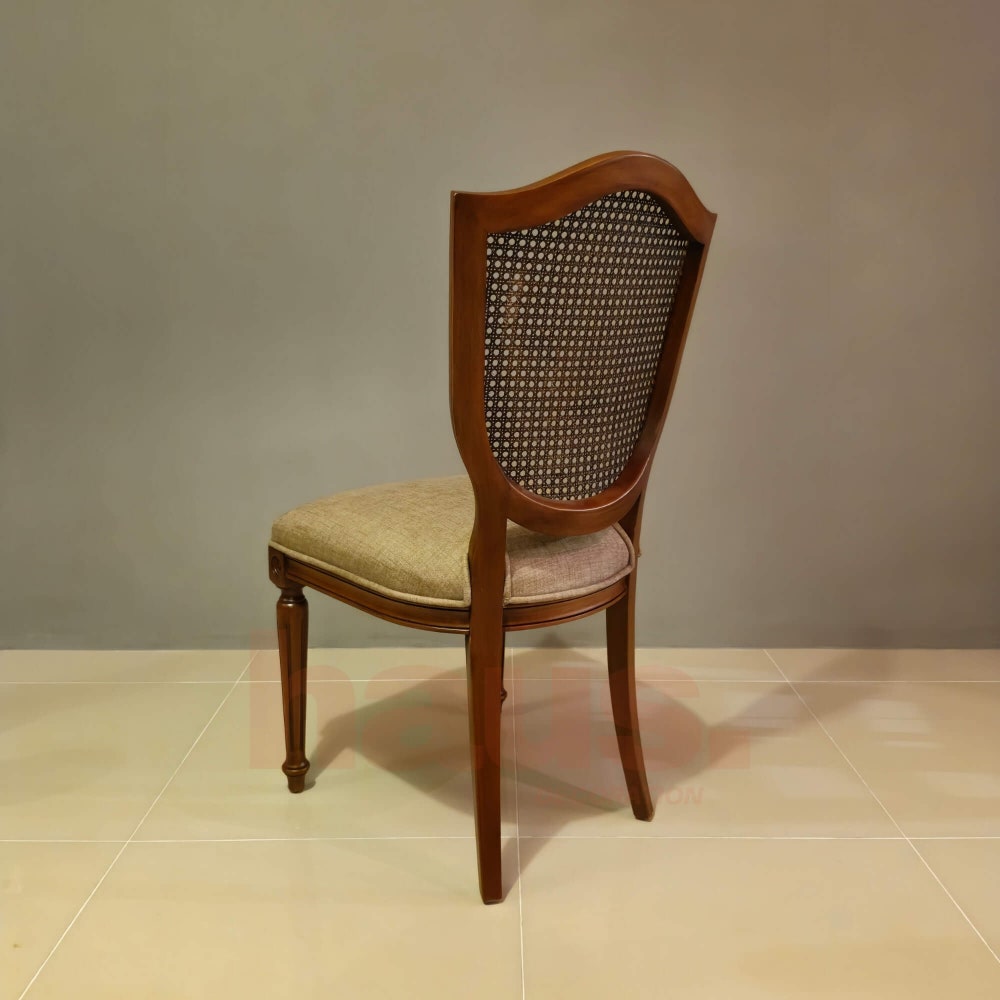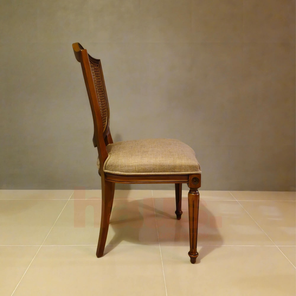 This wooden chair is inspired by vintage design, showcasing a natural hornbeam wood frame and natural rattan details. The soft linen fabric seat adds a touch of sophistication while providing lasting comfort. Ideal for dining, working, or relaxing, this chair fits any setting and is “fully customizable” to suit your preferences. Choose your finish, fabric, or even adjust the dimensions, because at Haus Decoration we create furniture that fits you.