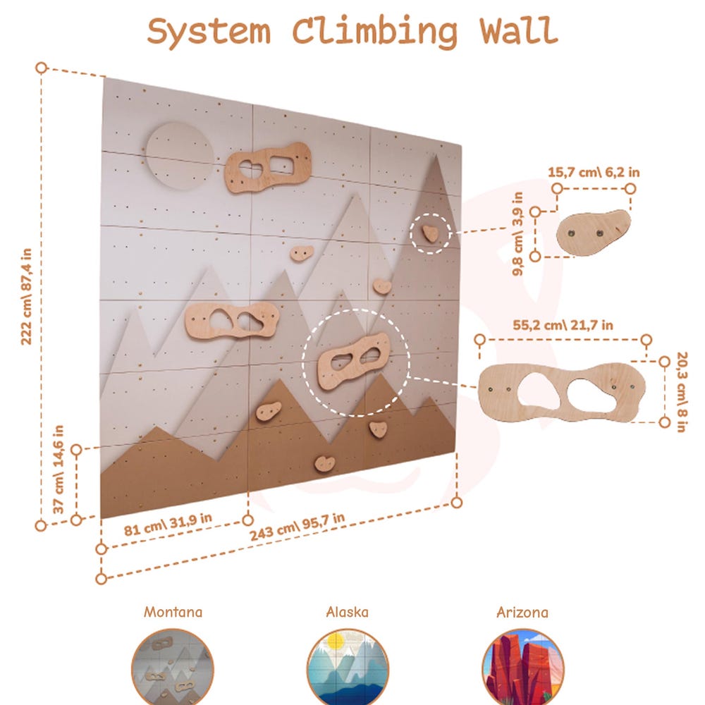 Rock Climbing Wall for Kids, Climbing Holds, Montessori Furniture for Playroom, System Wall, Climber Gift