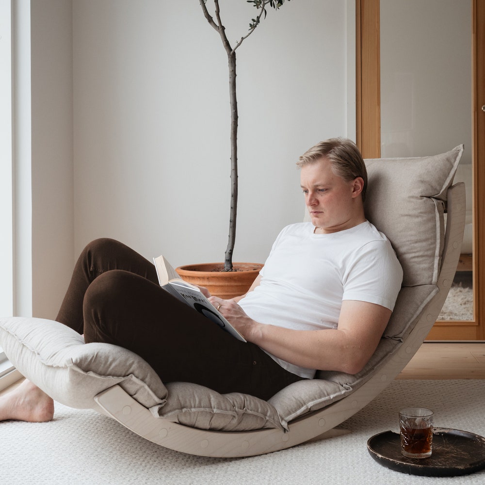 The gentle rocking motion has been shown to have numerous calming and relaxing benefits, such as reducing stress and anxiety, improving the quality of sleep, and enhancing concentration. Whether you like to unwind by delving into a good book, playing video games, binge-watching your favorite series, or knitting, LAAKSO is the perfect cozy spot for doing those things. For the utmost comfort, pair it with our plush OHRA cushion, and uninterrupted relaxation will be guaranteed.