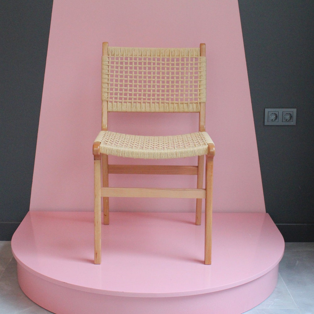 Rope weave Mid-Century Modern, Dining chair, Kitchen, Living room, Wood, Wicker, Office Chair, Home decoration, Interior design