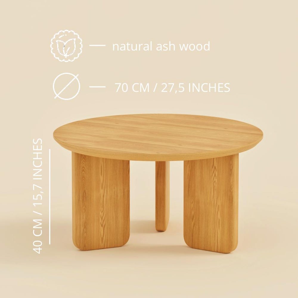 Round Coffee Table – Minimalist Handmade Ash Wood, Modern Scandinavian Design, Natural Finish, Rustic Room Furniture, Eco-Friendly Decor