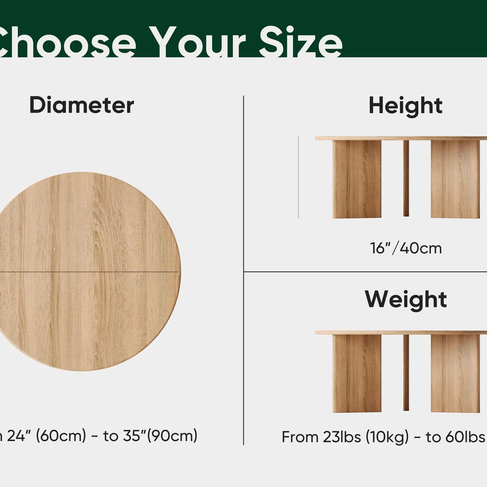 𝗧𝗮𝗯𝗹𝗲 𝗱𝗶𝗺𝗲𝗻𝘀𝗶𝗼𝗻𝘀 𝗶𝗻 𝘁𝗵𝗲 𝗳𝗶𝗿𝘀𝘁 𝗽𝗵𝗼𝘁𝗼: ⌀ 35″ (⌀ 90 cm) x 12″ (30cm)