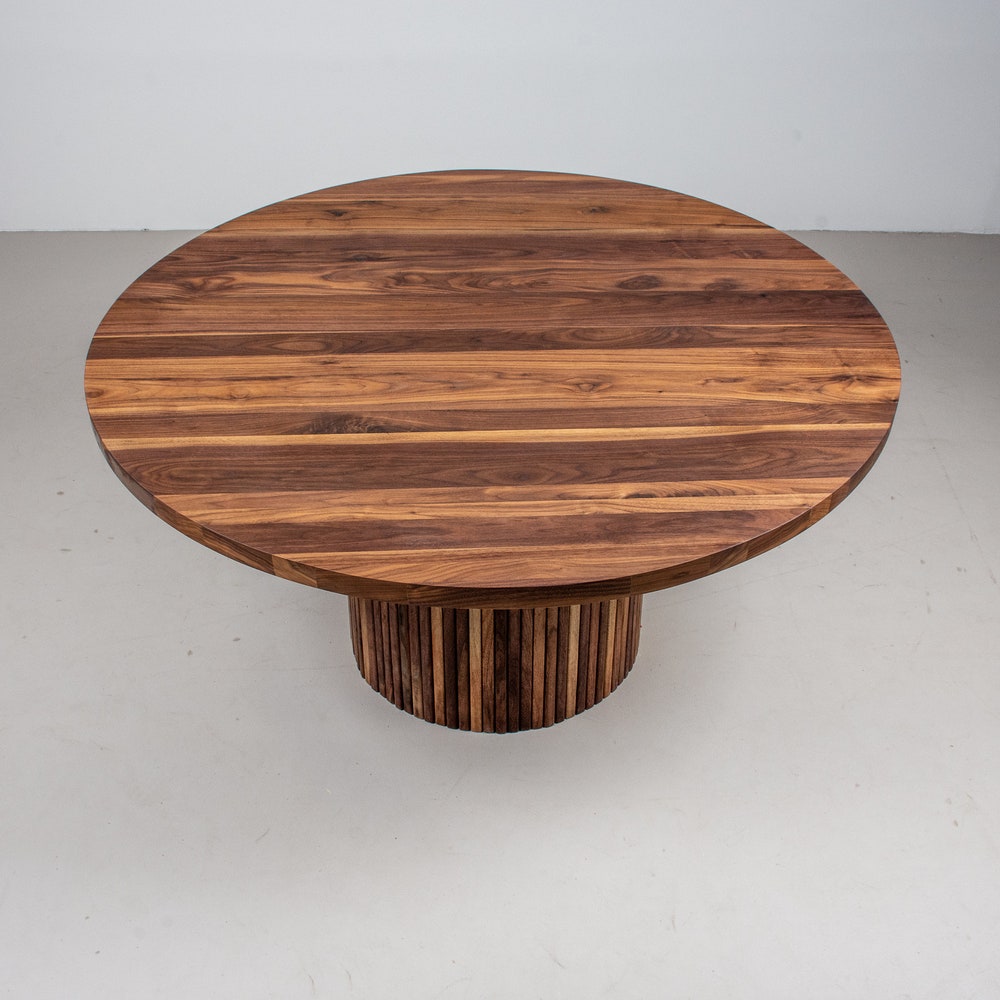 Elevate your dining space with this round dining room table. Round dining tables have a luxurious feel to them and this one with its fluted pedestal base has real presence to it. We build every table to order so there are many ways to make this table perfect for you.