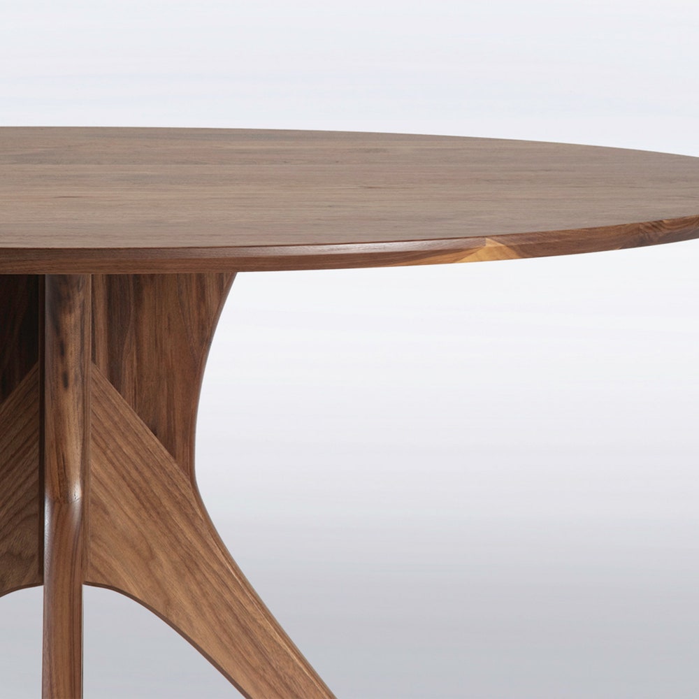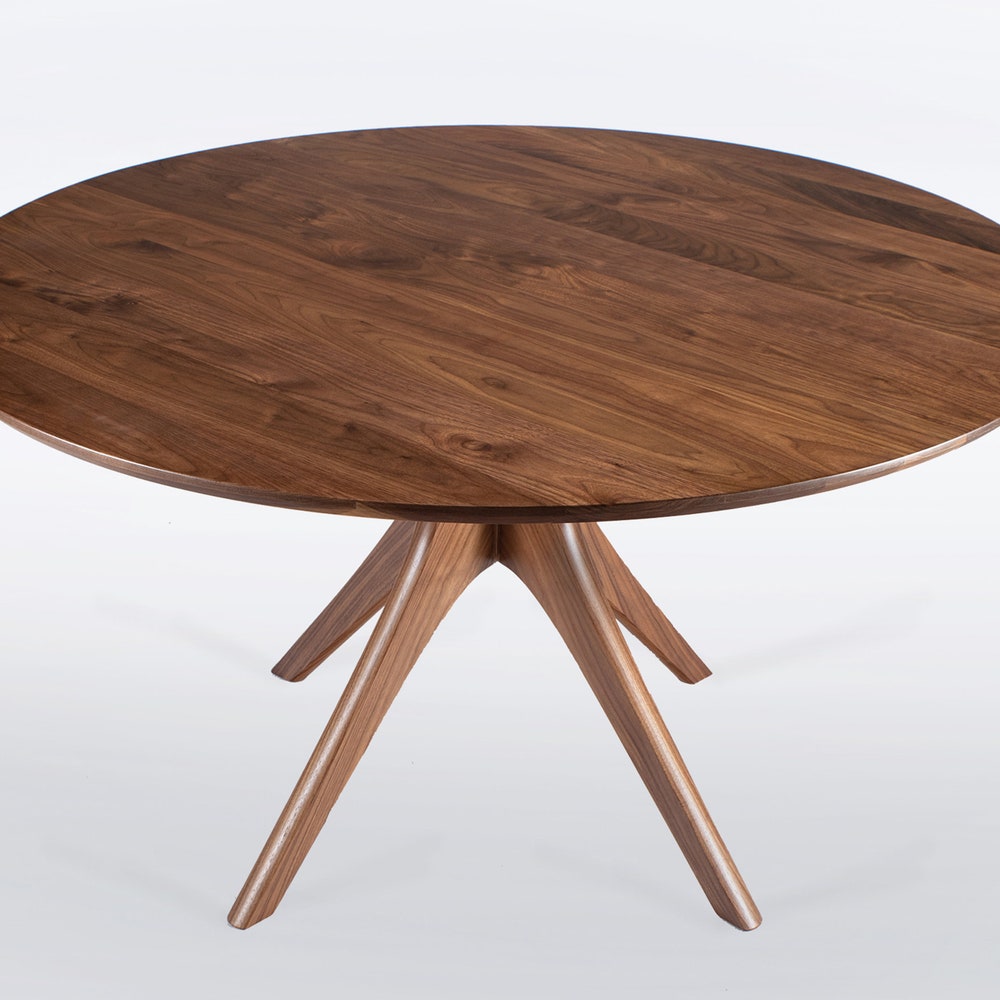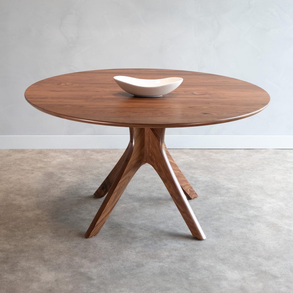 Round Dining Table Handmade In Solid Walnut, Cherry, Mahogany Or Oak Wood, Mid Century Modern Pedestal Base
