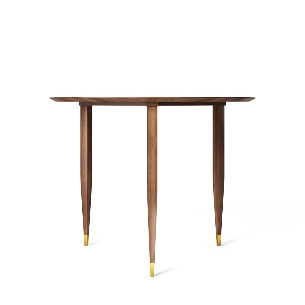 Beautiful dining table in mid century style with three tapered legs with brass feets.Table made of solid american walnut wood.Handmade in Poland. Dimensions:diameter of the top: 80cm(~31,5”) or 90cm(~35,5”) or 100cm(~39,4”)(photo) or 110cm(~43,3”) height: 75 cm (~29,5”) Material used: solid american walnut woodfeet: brass plated aluminum Wood finishing: high quality semi-matte varnish (natural hardwax oil […]