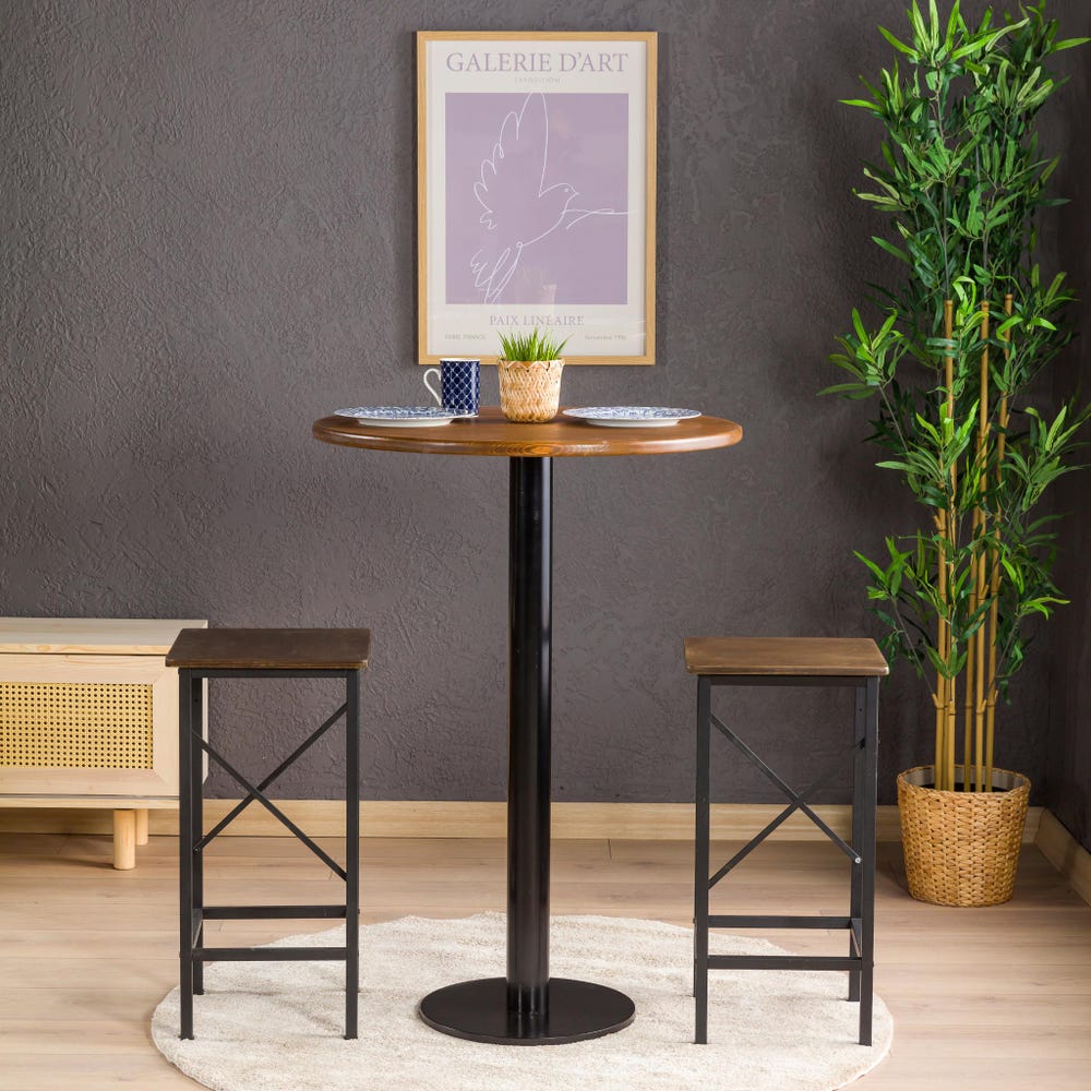 We combine round dining table with metal tulip leg. Here is the narrow bistro table solid pine wood walnut table with stool! Our circular table as a kitchen diningroom furniture. This 2 seat person pub bistro table indoor as a kitchen furniture will be absolutely fantastic small space table and Ideal as a pub bistro table for homes.