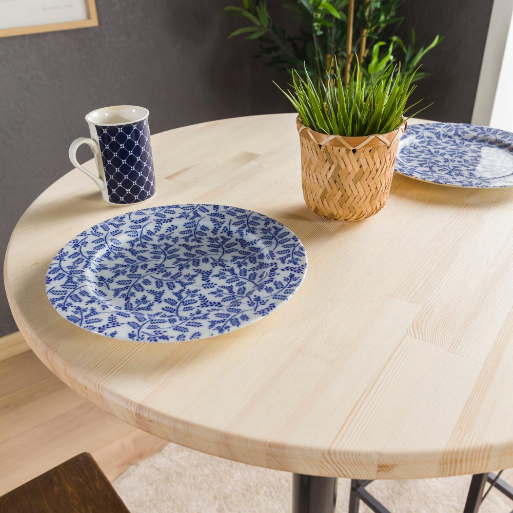This elegant round dining table is crafted from solid pine wood with a natural walnut finish, ensuring both durability and timeless appeal. With a total height of 105 cm, this table combines style and functionality, making it the perfect addition to any dining space. This table is crafted from 25 mm solid pine wood, ensuring both durability and a natural aesthetic. The table legs have a diameter of 40 cm, providing a sturdy base for everyday use. The tabletop shown in the photos has a diameter of 74 cm, while the table’s height stands at 105 cm, making it a versatile piece for various settings.