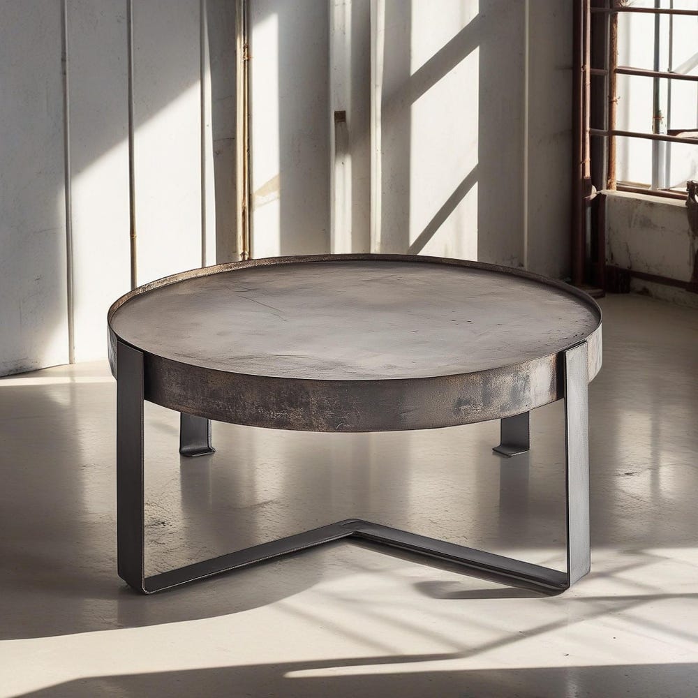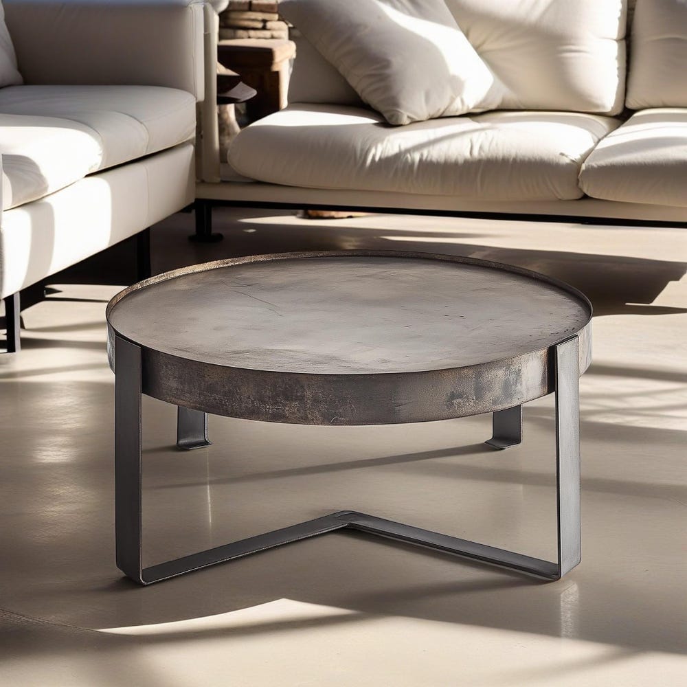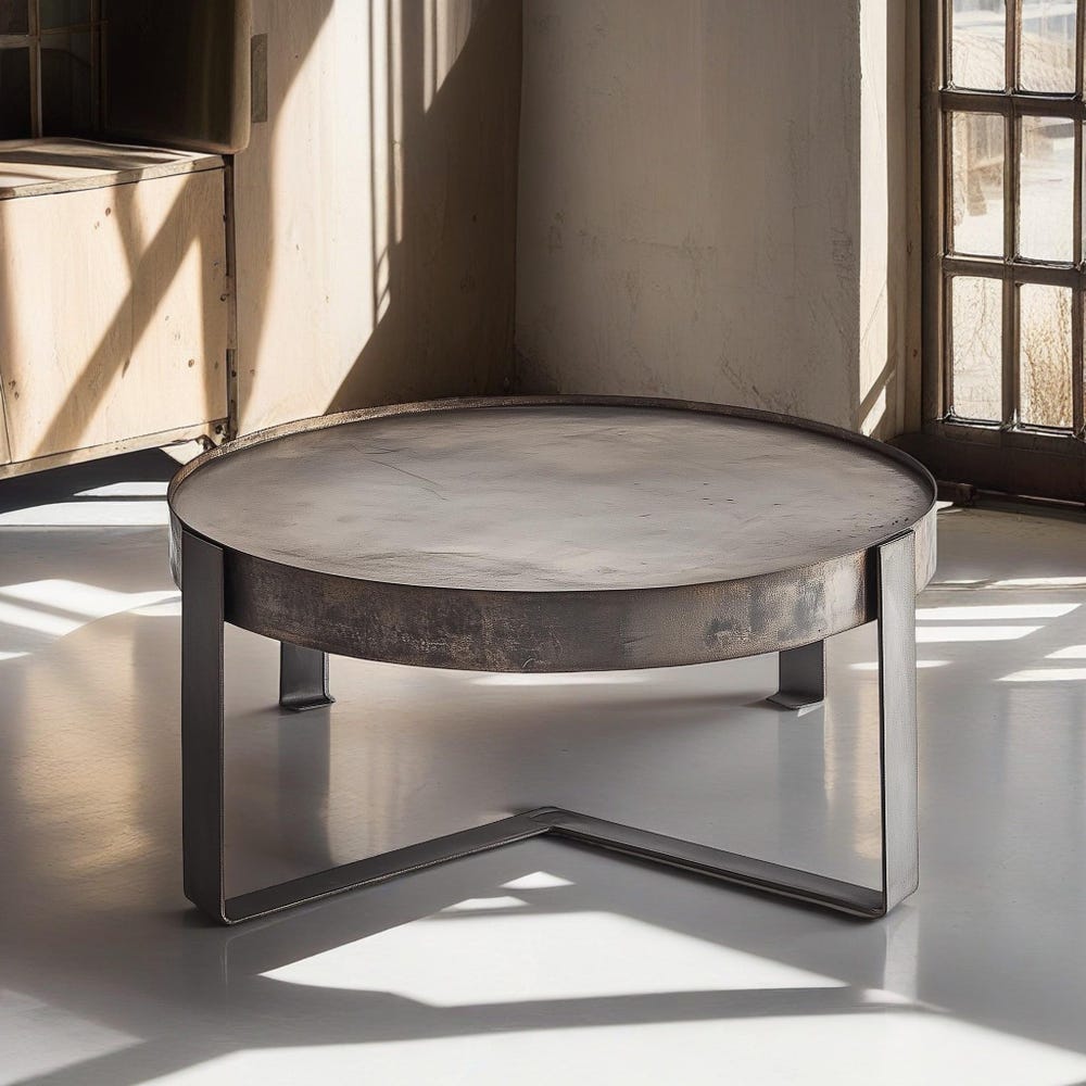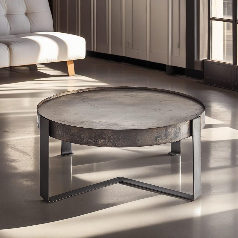 Round Drum Coffee Table, Unique Metal Coffee Table, Low Coffee Table, Metal Coffee Table