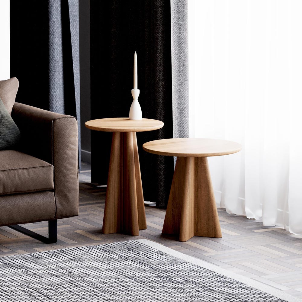 Round End Table – Unique Side Table – Modern Solid Oak Table – Wooden End/Side Table for Living Room – Set of End Side Tables