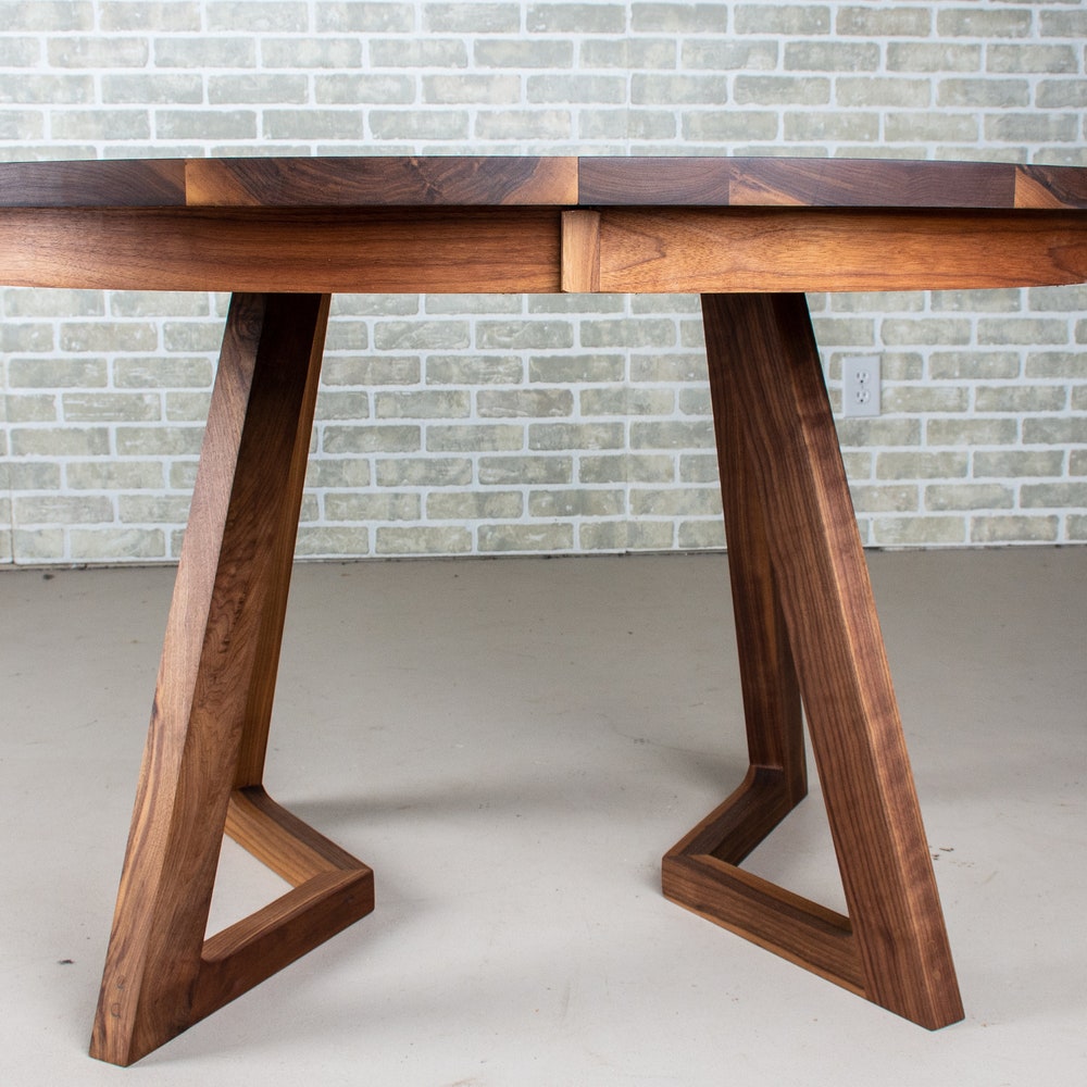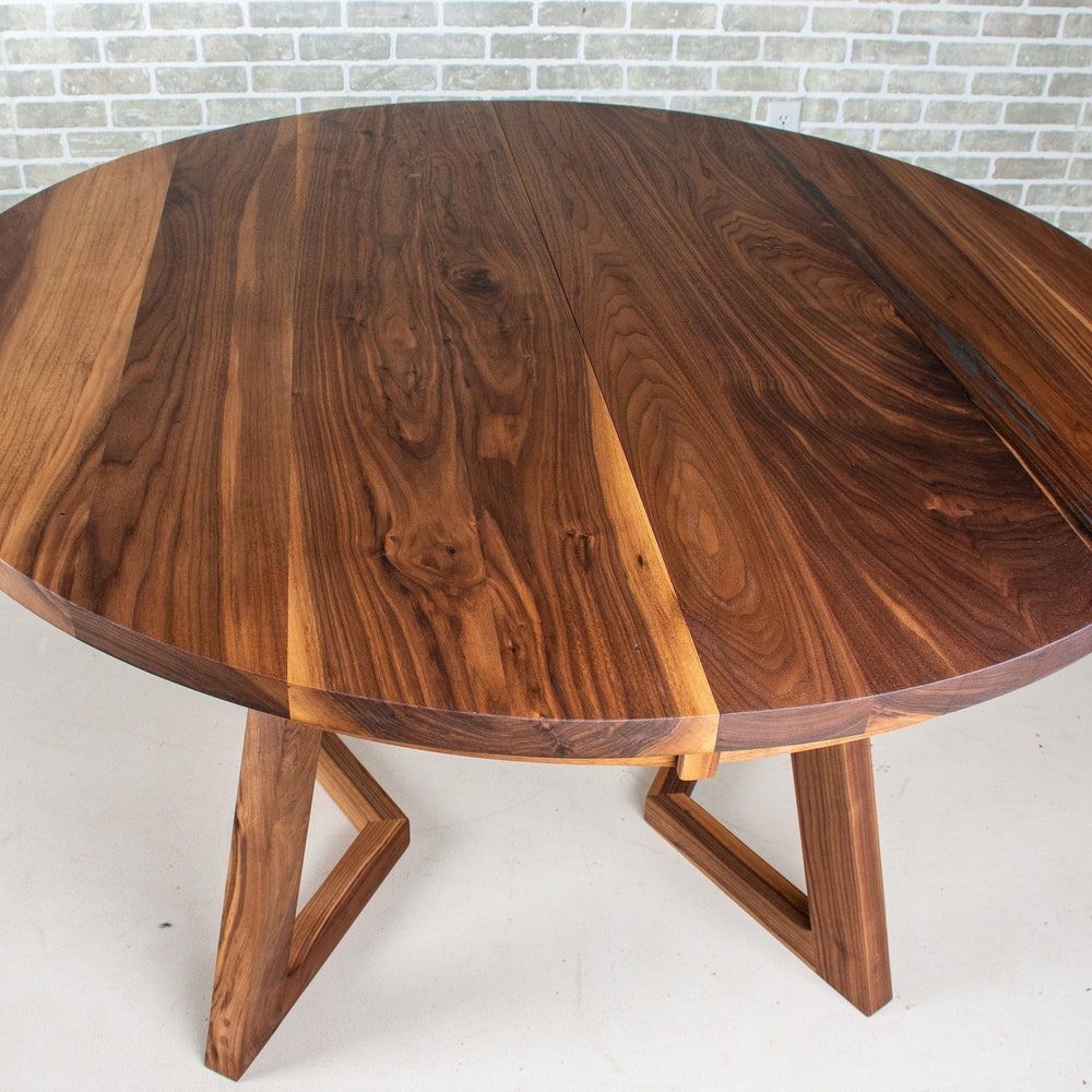 An extension table like this round extendable dining table allows you to always be ready for a few extra people around the table. The core table looks great for everyday use – and the leaves are easily added to the middle to accommodate a few more people. We build every table to order so there are many ways to make this table perfect for you.