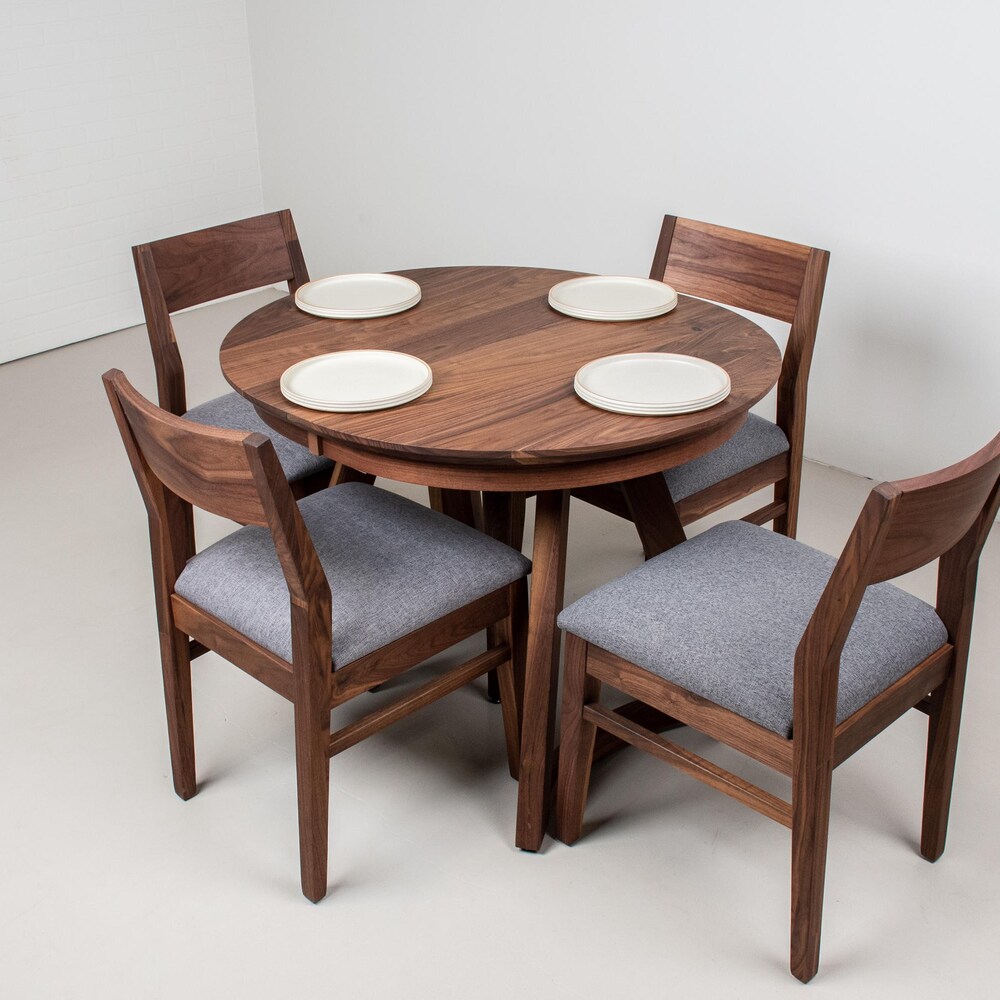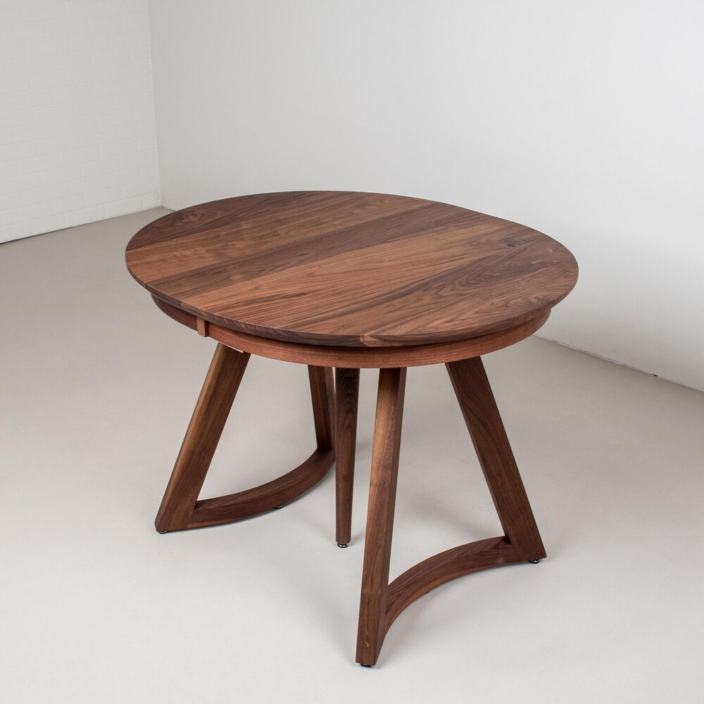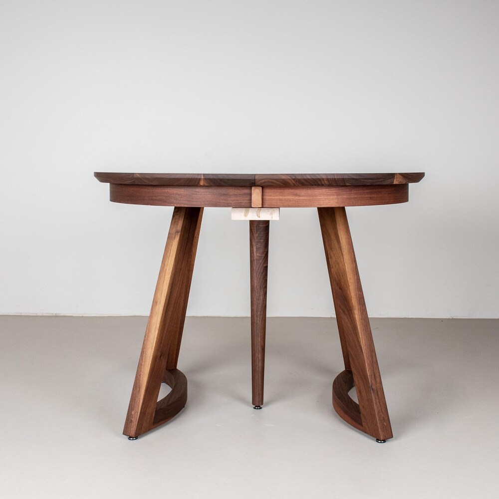 Round Extension Table, Extendable Walnut Table with Extra Leg Support, Round Walnut Table, Round Dining Table for Small Space