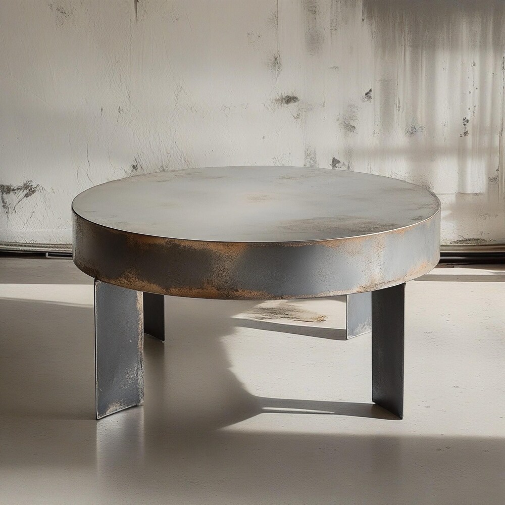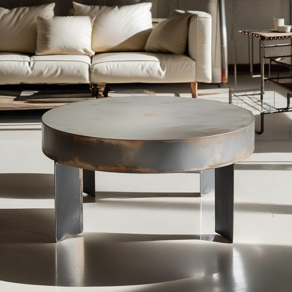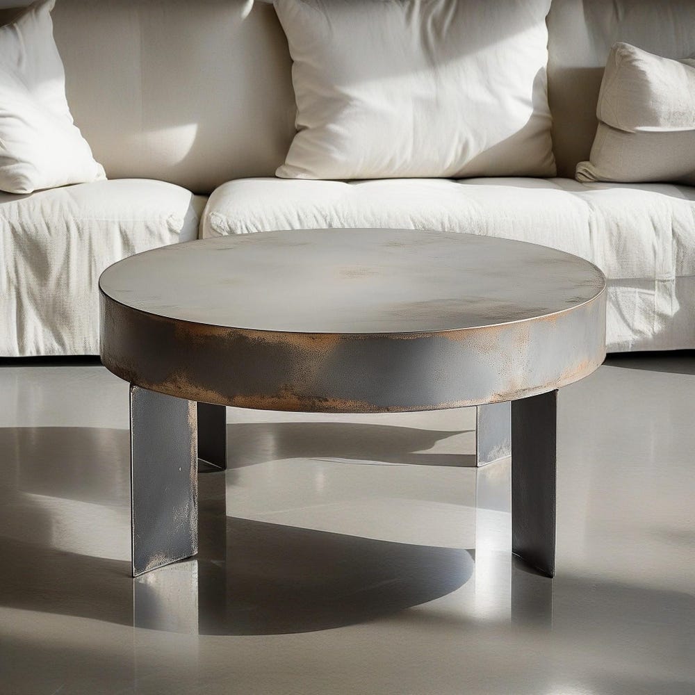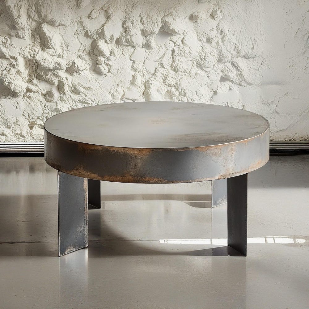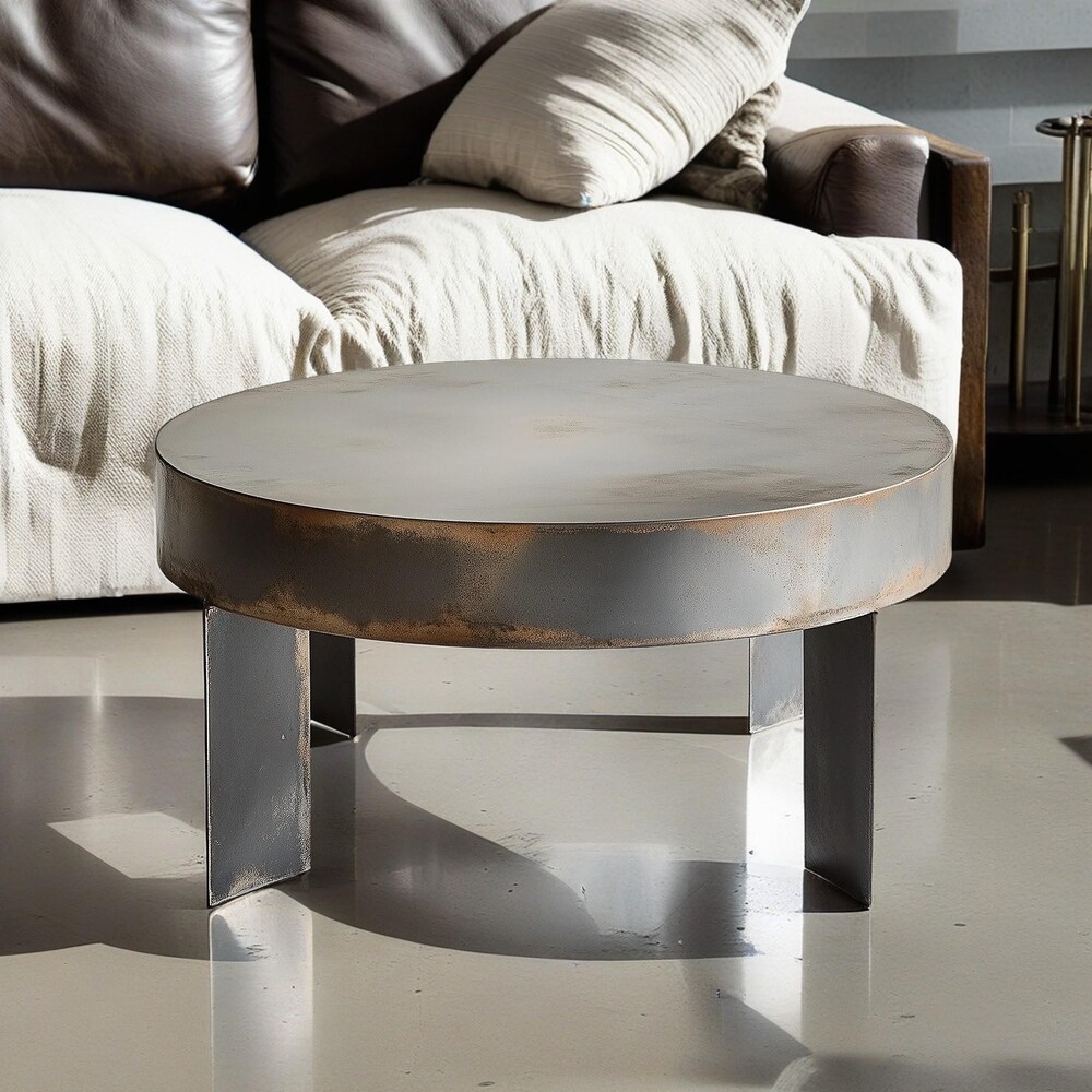 Round Metal Coffee Table, Drum Coffee Table, Metal Drum Coffee Table, Low Coffee Table