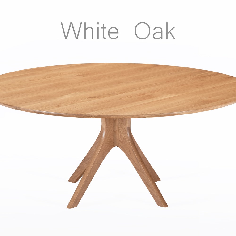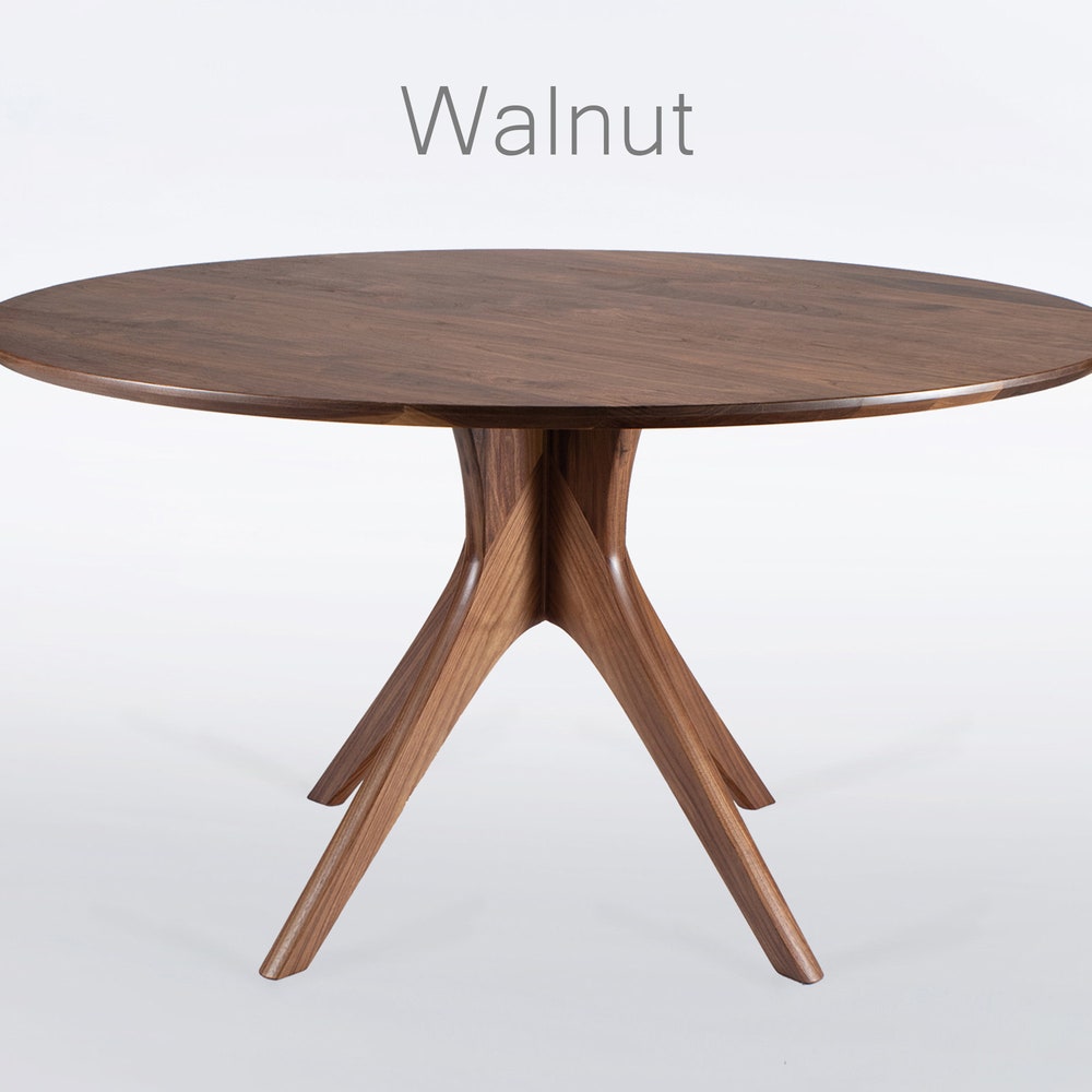 Your round dining table is meticulously handmade for you in your choice of solid cherry, walnut, oak or mahogany wood (shown here in walnut). Your table gets its color from the natural beauty of the wood, not stains or dyes.
