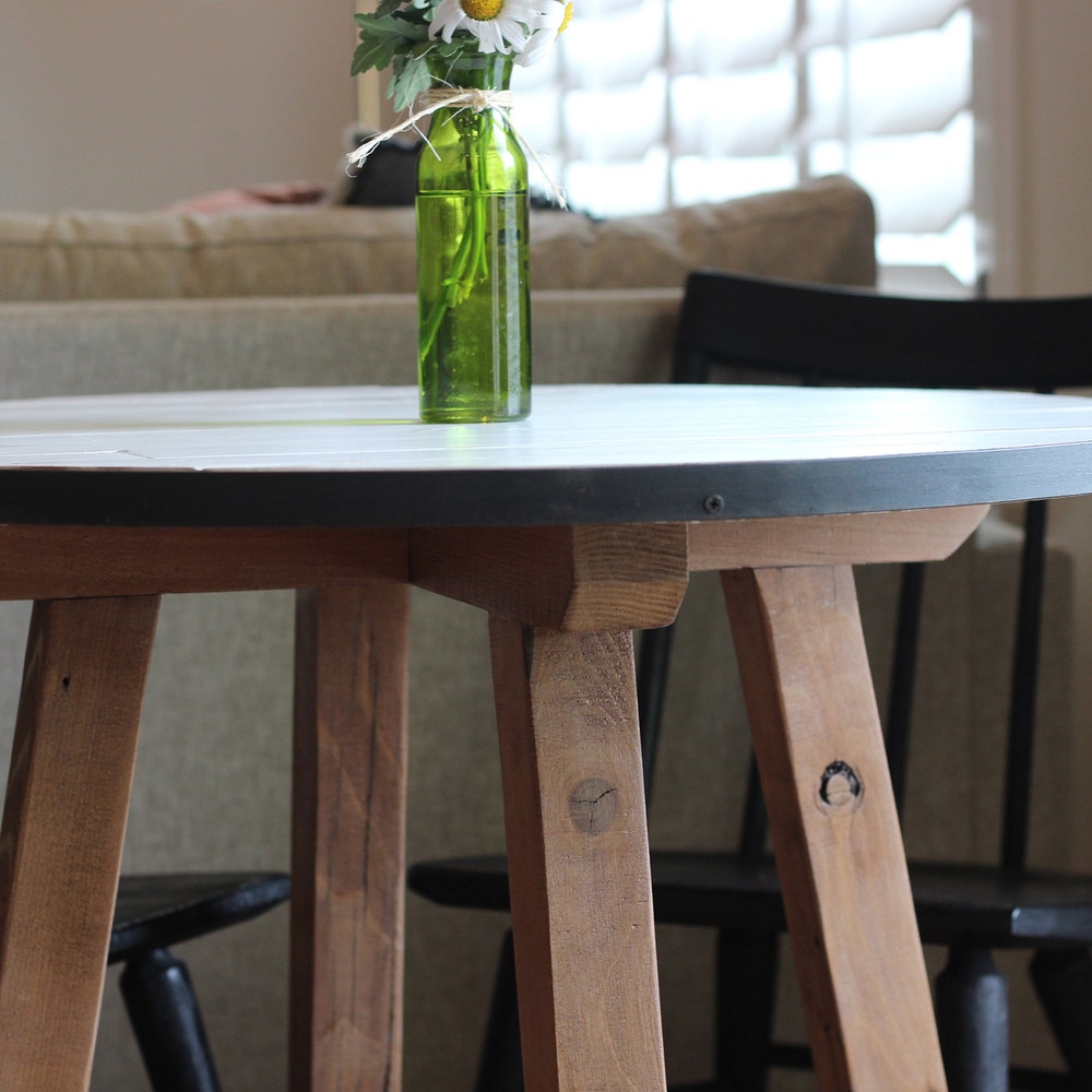Round Modern Breakfast Nook Table | Natural Reclaimed Wood Table Top with Wooden X Style or Metal Pedestal Leg | Custom Kitchen Furniture
