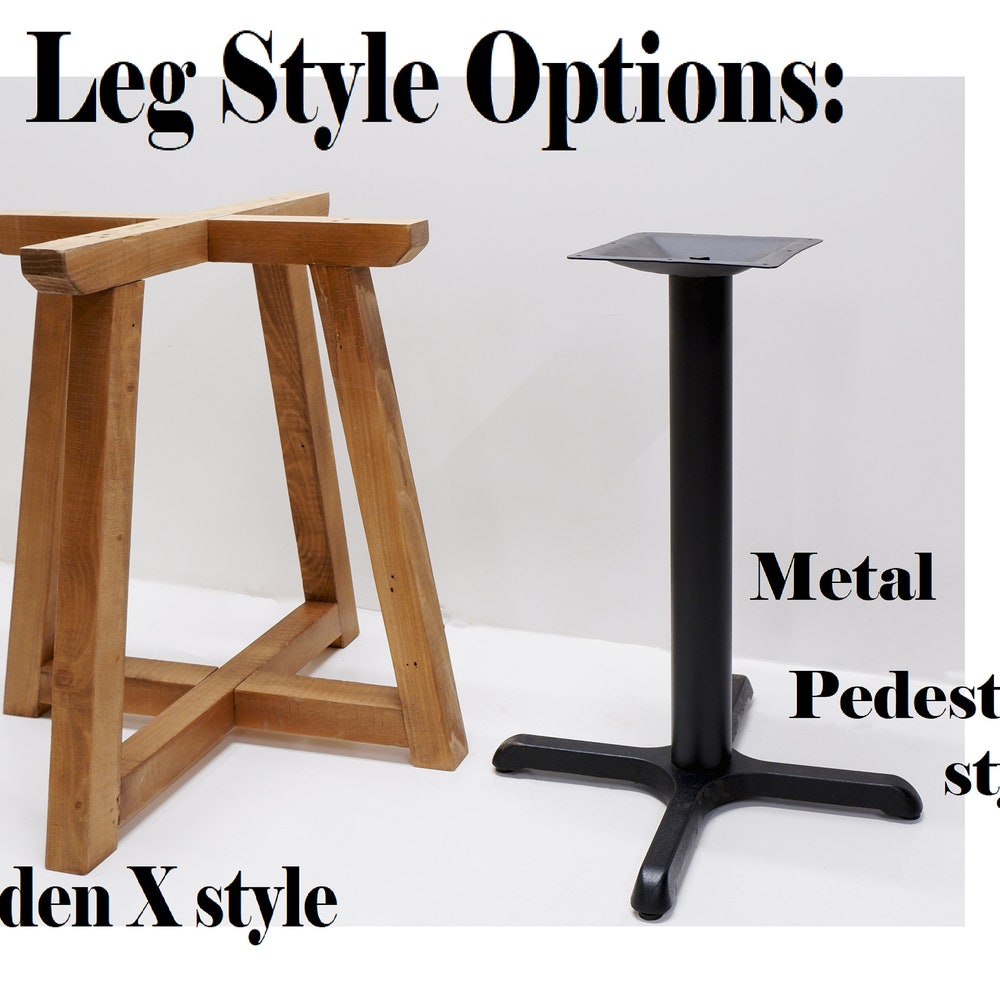 OUR NEW– Wooden X style table leg- Made with reclaimed wood. We do make this one! We use recycled 4×4 posts shaved on all four sides until they are 2.25 inches square. This is REAL reclaimed wood and colors, textures, and wood grains will vary. Knots, nail holes, and saw marks are common and add to the overall rustic nature of using repurposed materials. We also lightly sand and seal the wood with a matte water based polyurethane. (For more info see our listing for just the Leg. https://www.etsy.com/listing/1071109185)