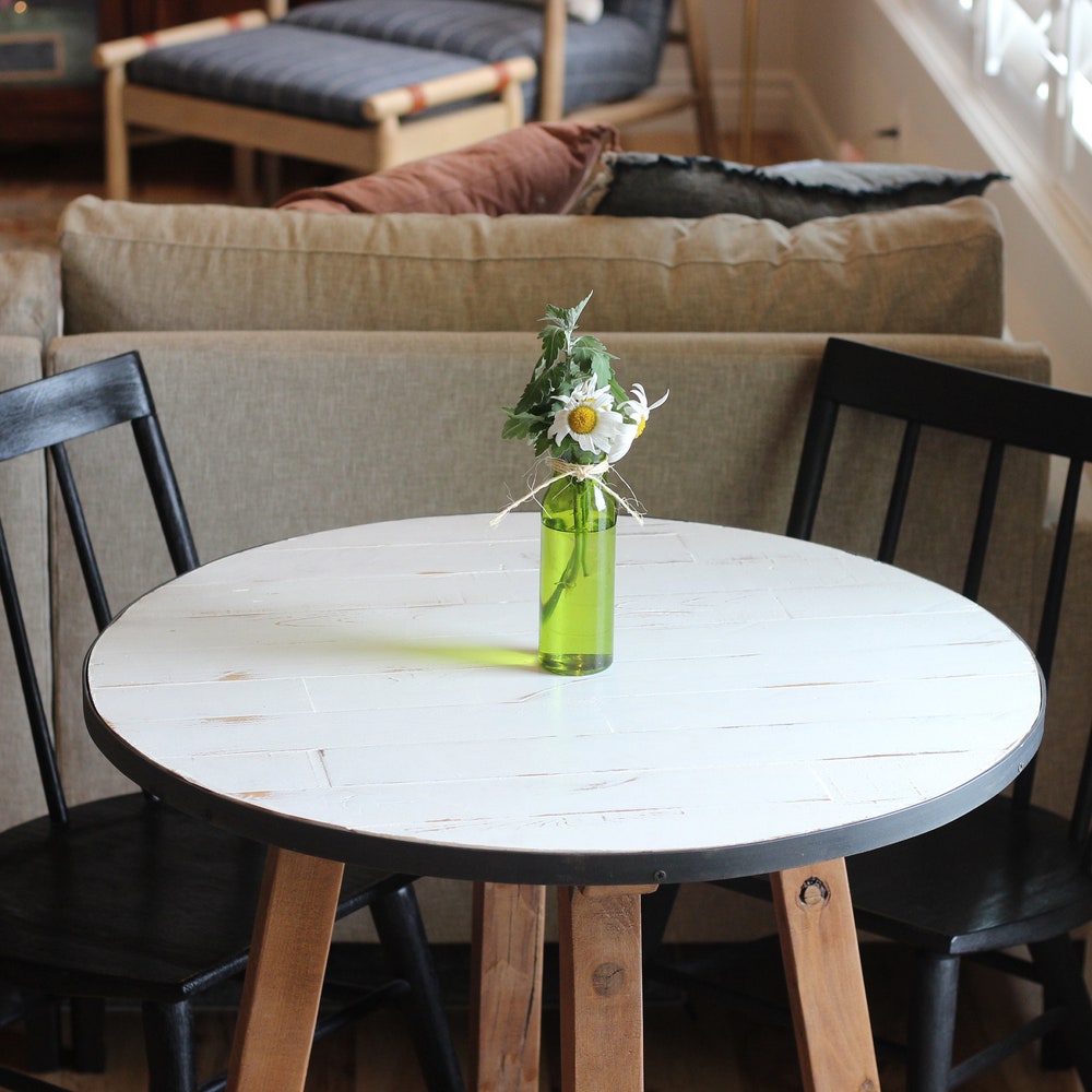 What a cute little table! Do to the popularity of these tables, and the many different variations our amazing customers have requested, we have expanded the Finish Options!! The possibilities seem endless and we will try and make your custom table top to exactly the way you want it. This listing covers the RECLAIMED & PLANED WOOD finish line!! Made with authentic reclaimed wood, this small farmhouse breakfast table offers simplicity, functionality, and beauty to any kitchen nook or dining room. It’s a great corner table for puzzles, cards, or the coffee maker and nice enough to use as a display at weddings or other special events.