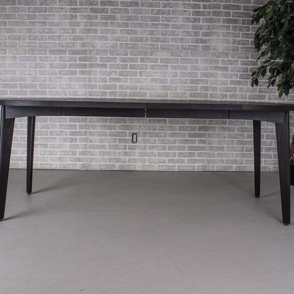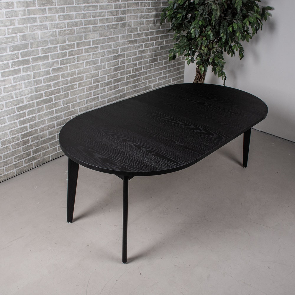 This round oak extendable dining table is made for smaller spaces. The everyday size of the table is 42″ round which seats 4 people. Adding in the 2 -20″ leaves only when you need them means you can extend into tighter spaces for those occasions when you need to seat 8. The black finish on the oak gives the table a modern feel while still keeping the sturdy foundations of solid oak. We build every table to order so there are many ways to make this table perfect for you.