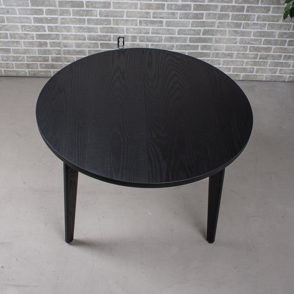 Round Oak Extendable Dining Table, Oak Round Dining Table With Extenders, Extending Round MidCentury Dining Table, Black Oak Dining Table
