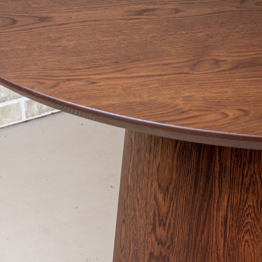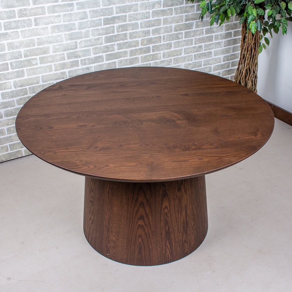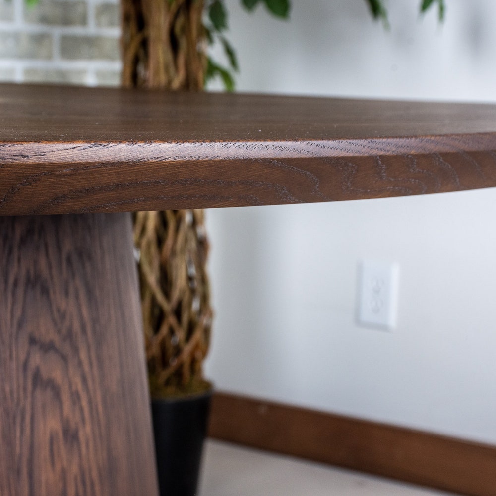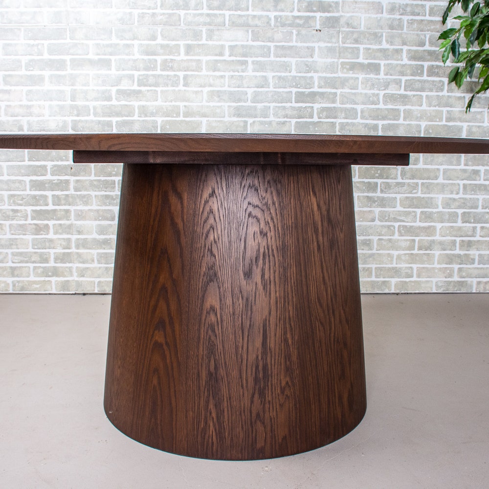Round Oak Table, Minimalist Circular Wood Dining Table on Pedestal Cone Base, Round Wood Table, Custom Pedestal Dining Table