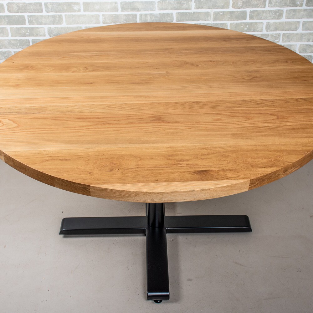 Round Oak Table, Oak Dining Table on Cafe Style Base, Round Wood Table on Pedestal Base, Solid Oak Table Top, Round Pedestal Table