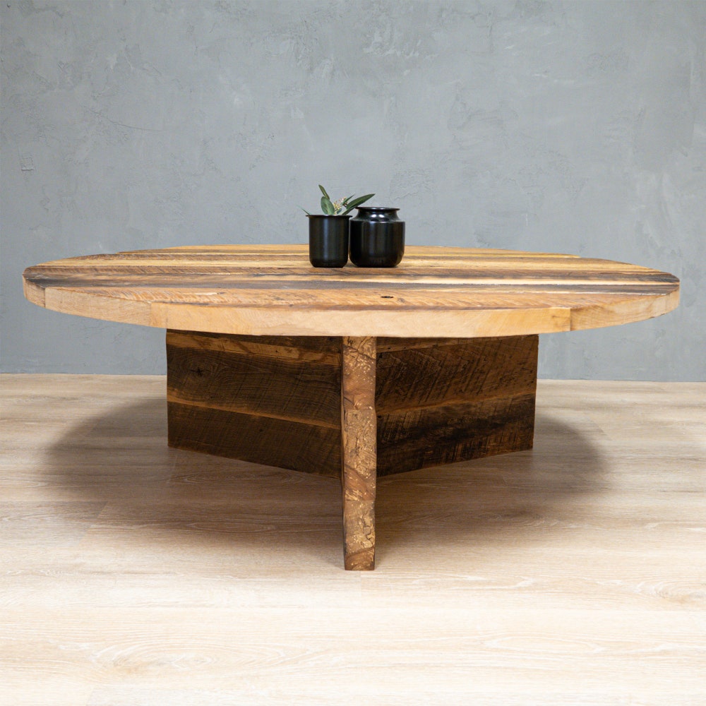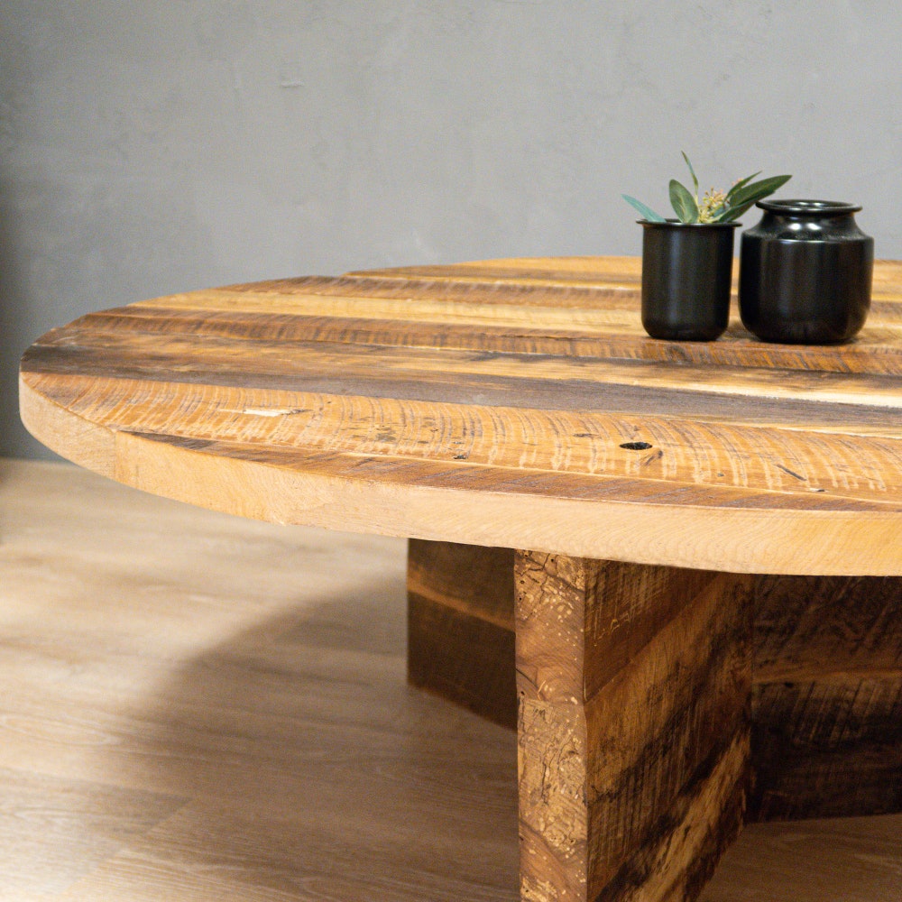 Our Round Reclaimed Coffee Table are designed to be aesthetically pleasing and conveniently efficient. Simple silhouettes and wooden accents complement traditional and modern design styles.