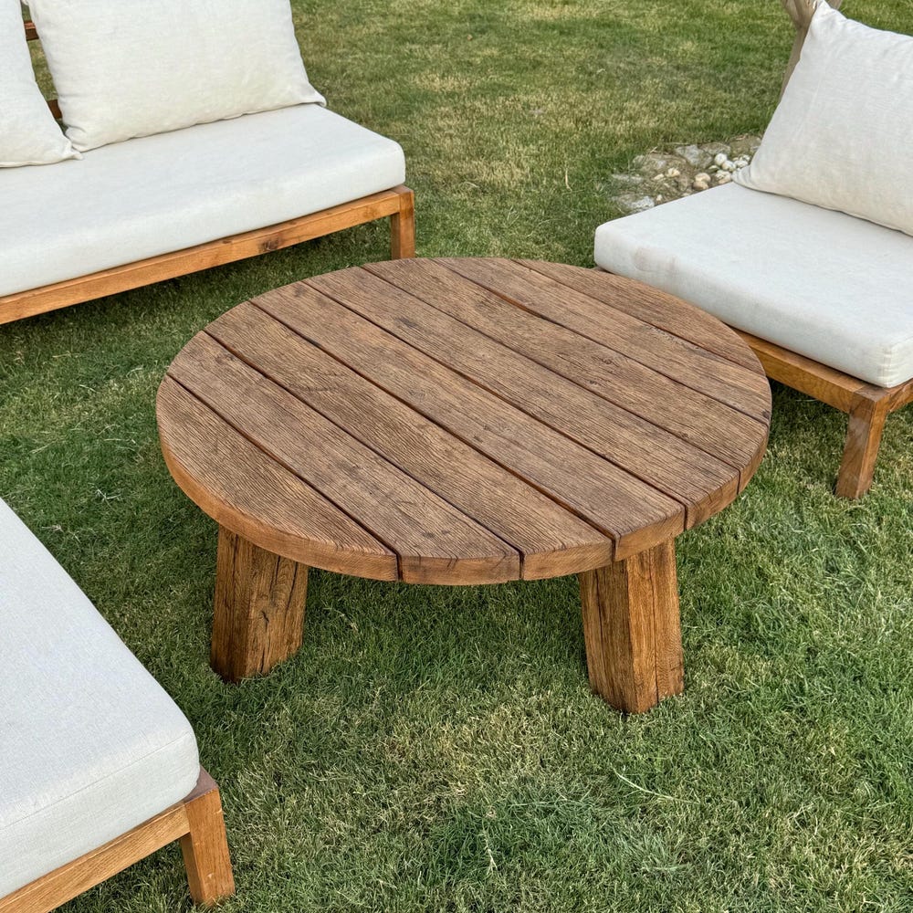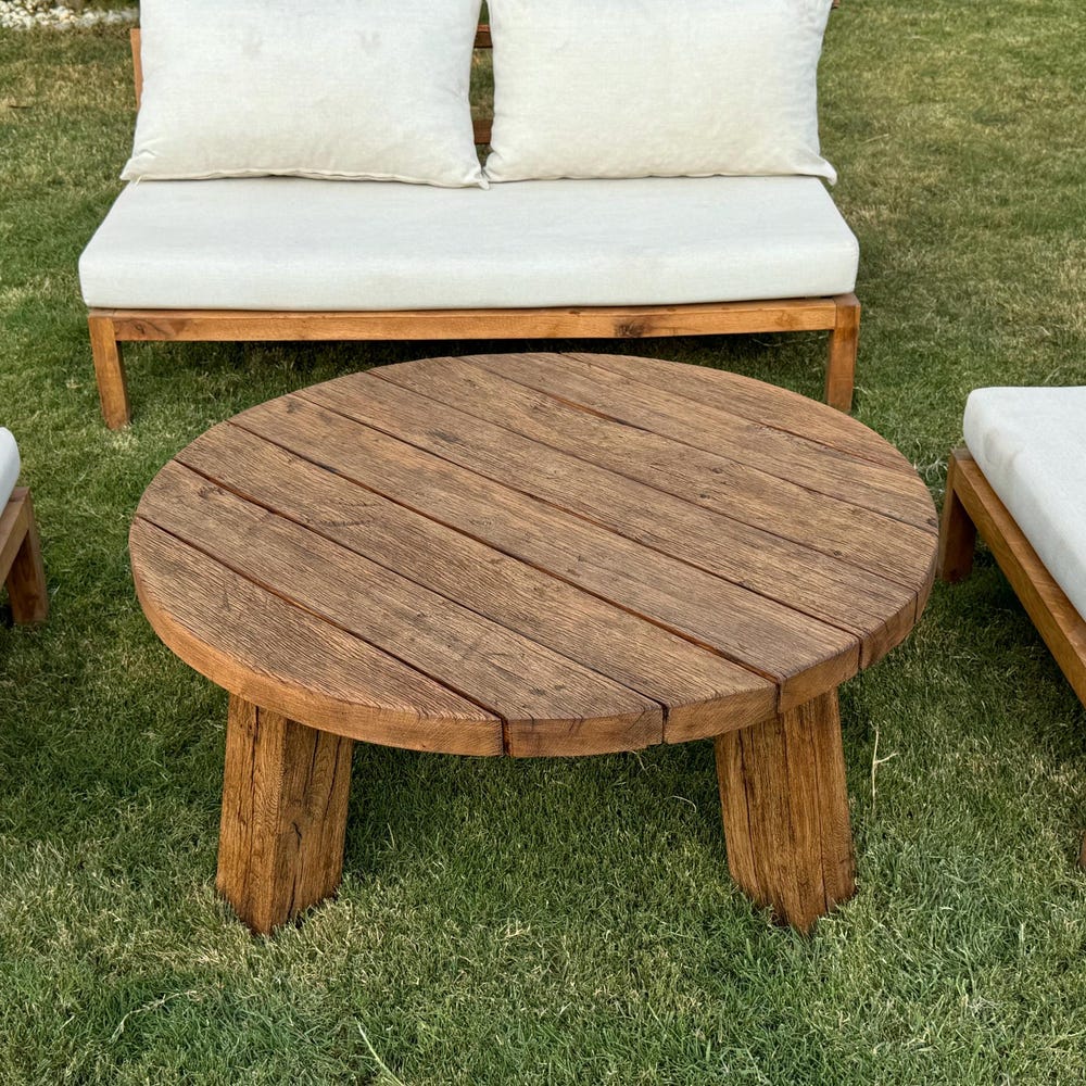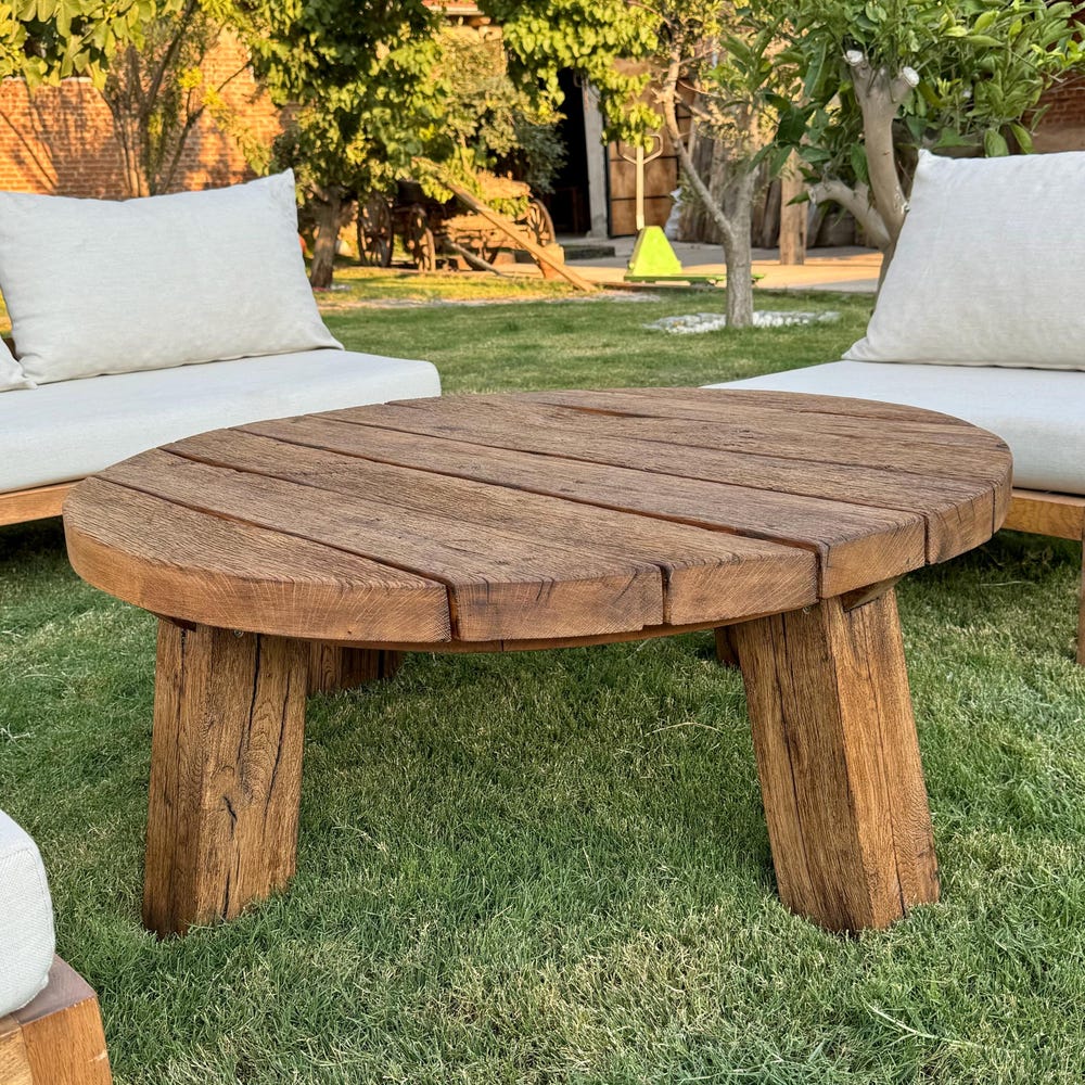 Round Reclaimed Wood Coffee Table, Outdoor Patio Furniture Wood Table Legs, Rustic Coffee Table for Outdoor, Small Garden Table