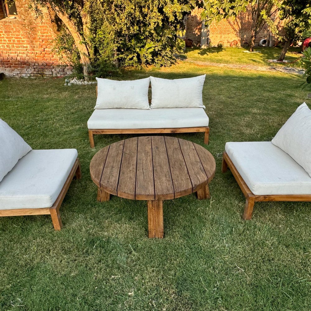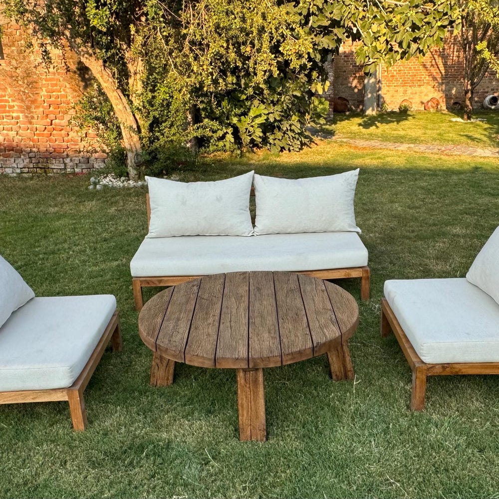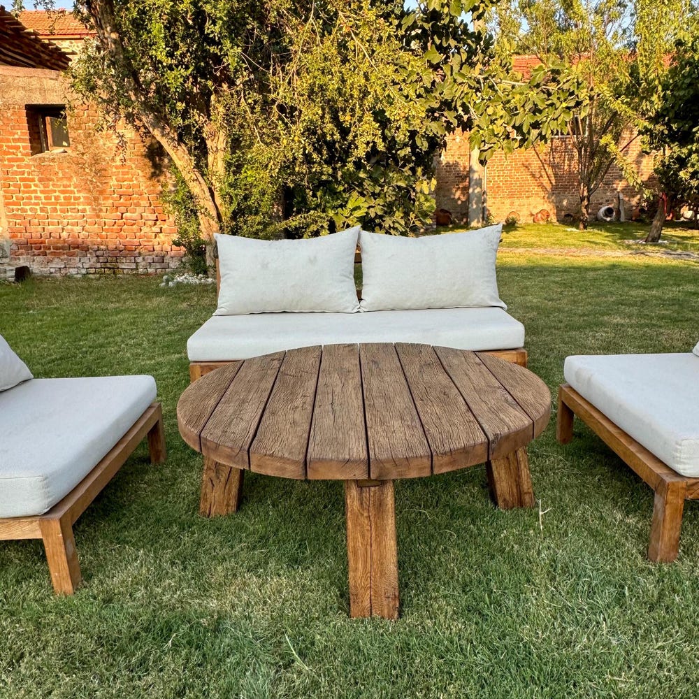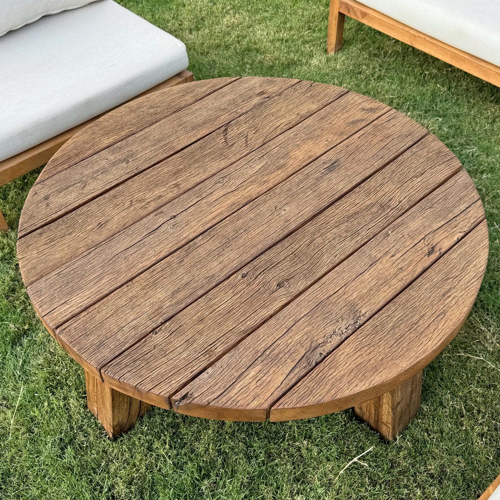 Round Reclaimed Wood Coffee Table, Outdoor Patio Furniture Wood Table Legs, Rustic Coffee Table for Outdoor, Small Garden Table
