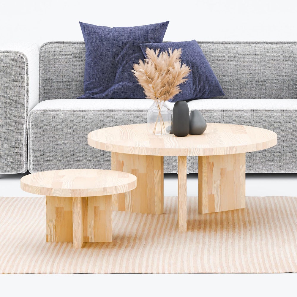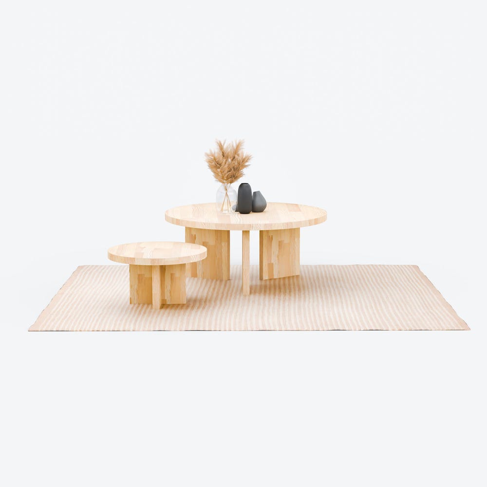Keywords: round coffee table, solid wood coffee table, livingroom furniture, Scandinavian design, wood coffee table set, natural wood table.